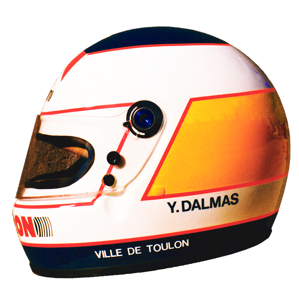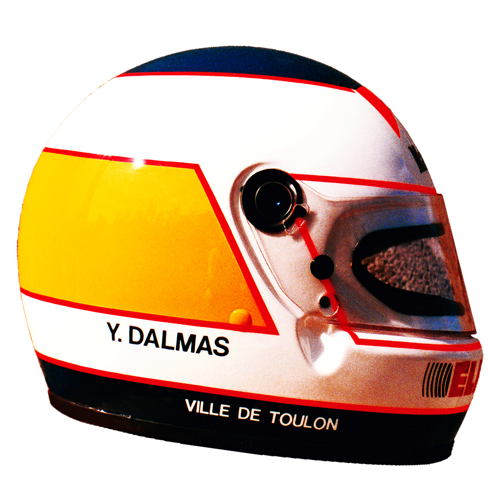 Formule 1 1987 Yannick DALMAS Casque Bell XFM-1, peint par Christian Roux / Rainbow Colors en 1987 pour Yannick Dalmas, écurie Oreca F 3000. Précédent Suivant