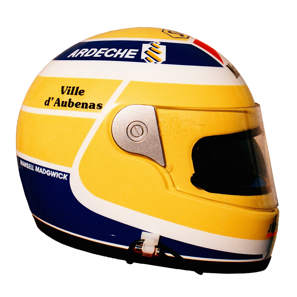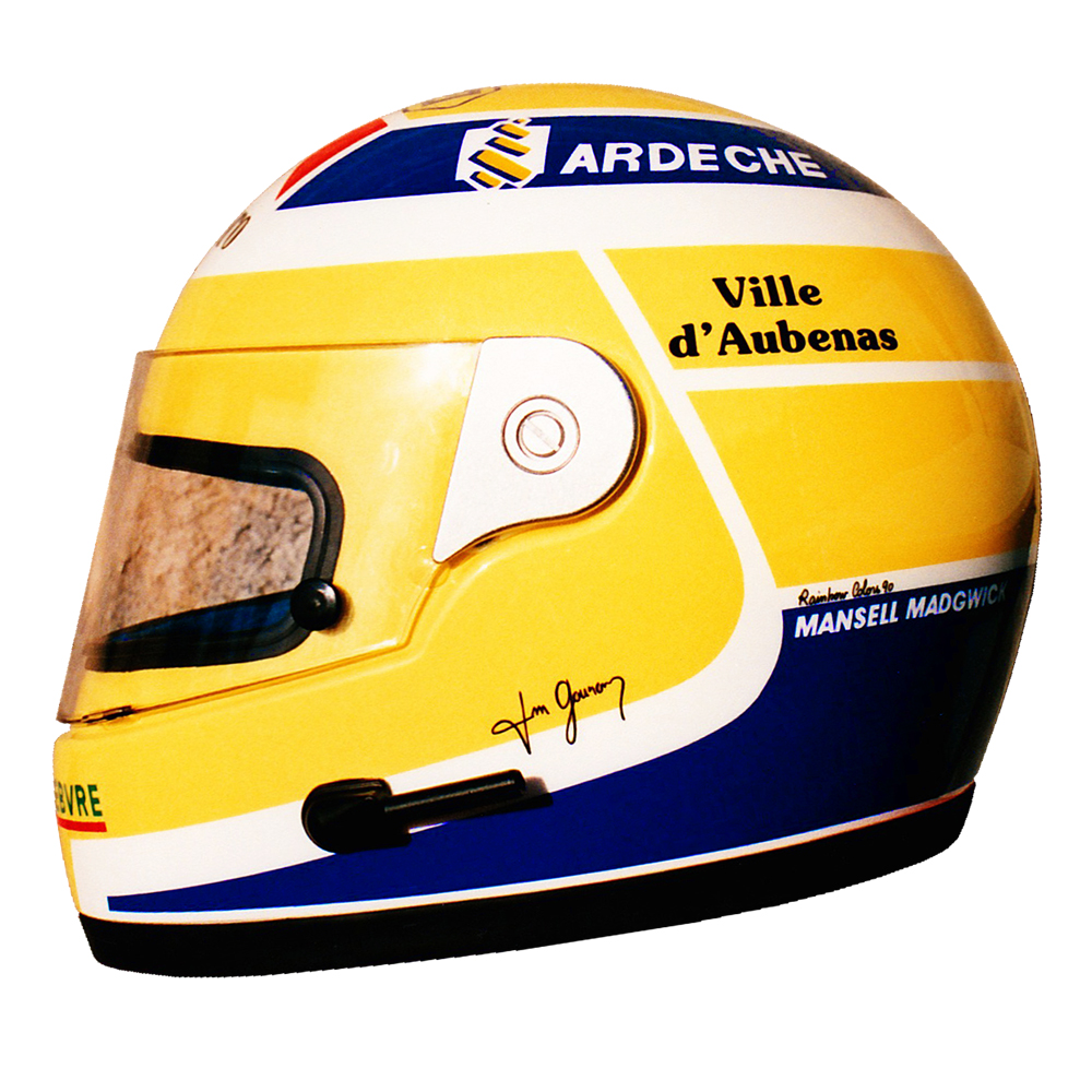 Formule 1 1990 Jean Marc GOUNON #1 Casque Shoei GRV 4, peint par Christian Roux / Rainbow Colors en 1990 pour Jean Marc Gounon, Mansell Madgwick Motorsport, Championnat International de Formule 3000. Précédent Suivant