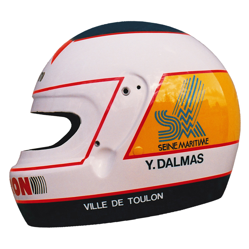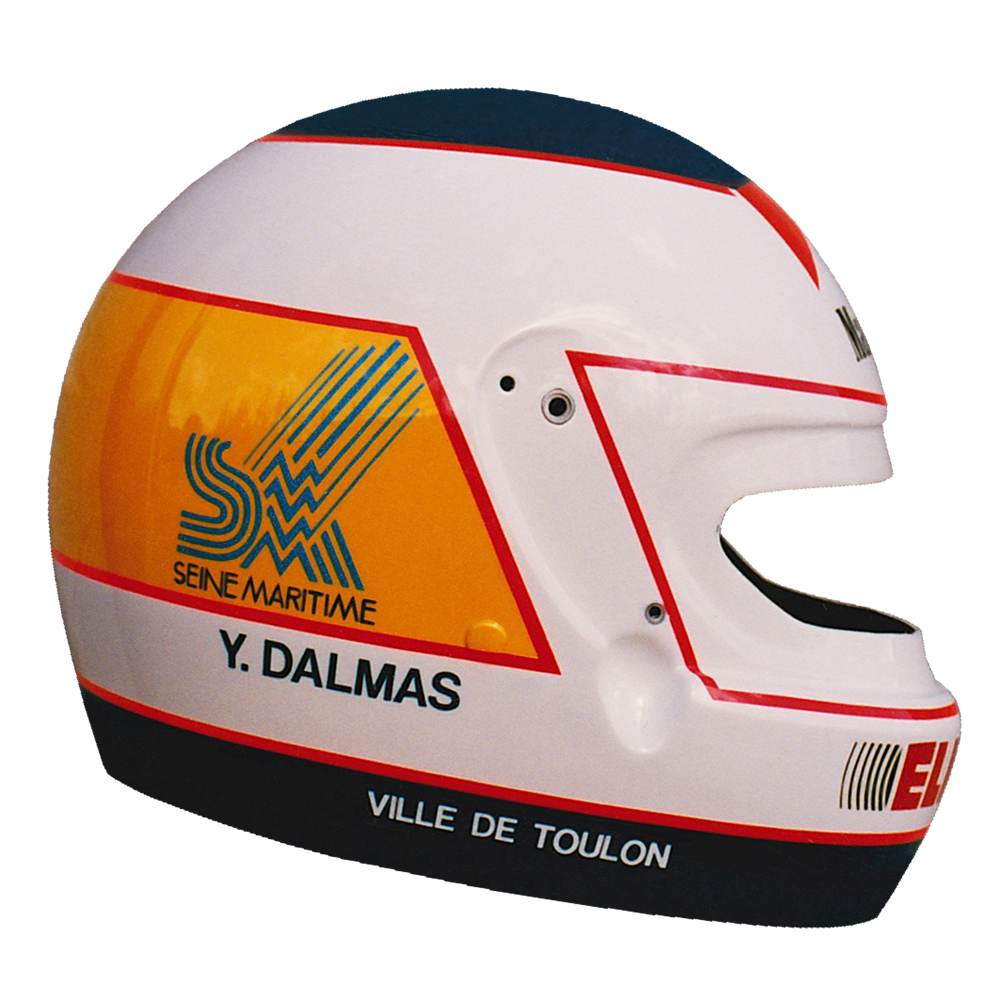 Formule 1 1987 Yannick DALMAS #2 Casque Bell XFM-1, peint par Christian Roux / Rainbow Colors en 1987 pour Yannick Dalmas, écurie Larrousse F1. Précédent Suivant