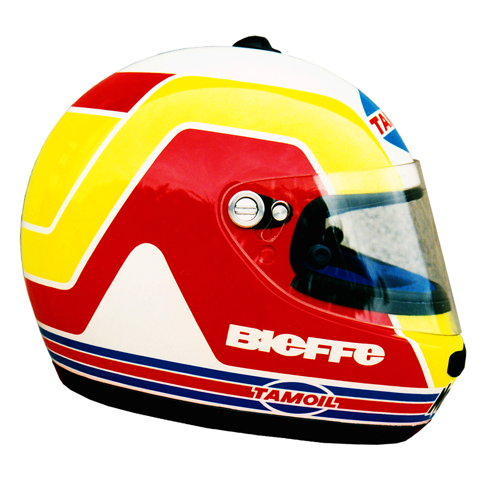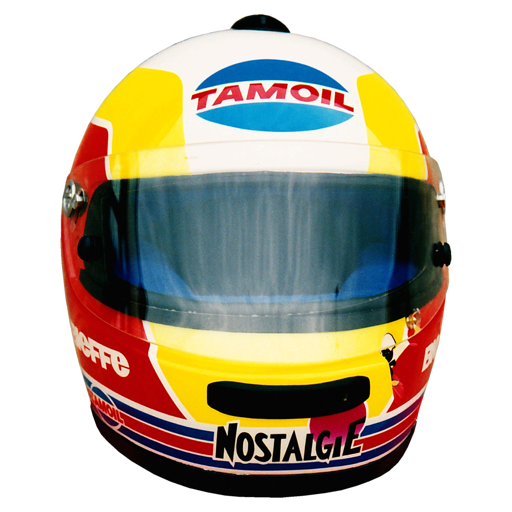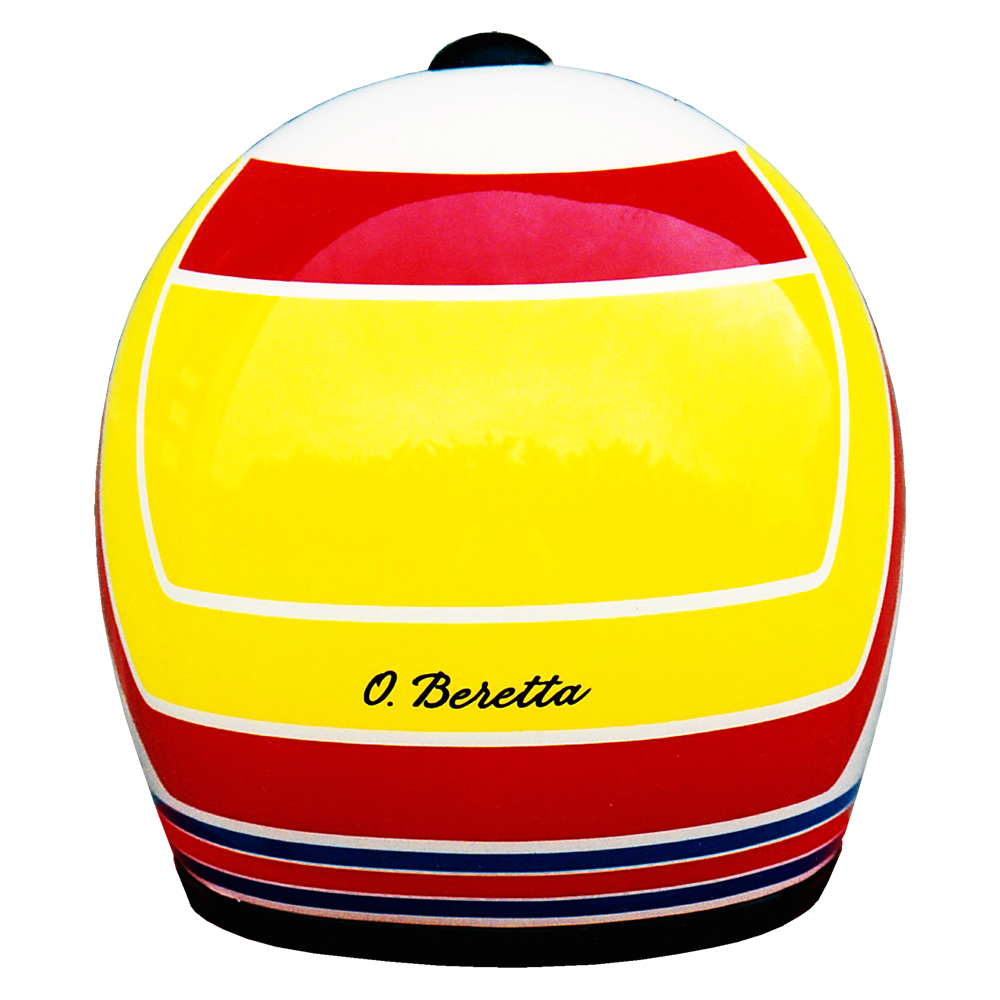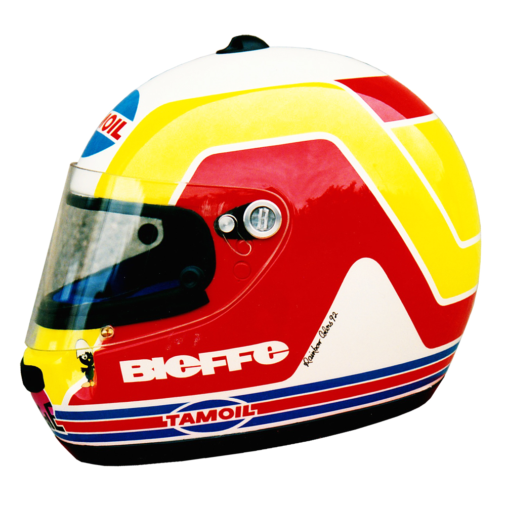 Formule 1 1992 Olivier BERETTA #1 Casque Bieffe F1, peint par Christian Roux / Rainbow Colors en 1992 pour Olivier Beretta, Team Piquet Racing, Championnat International de Formule 3000. Précédent Suivant