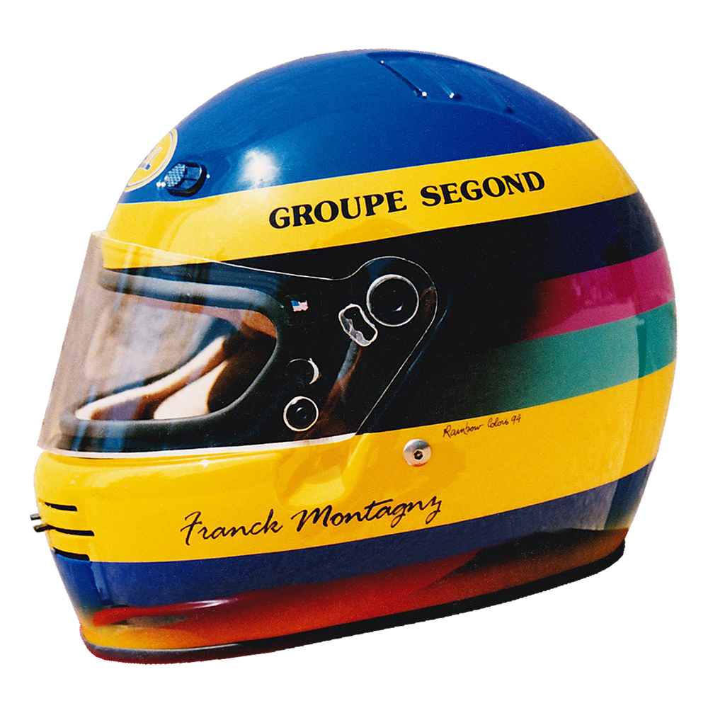 Formule 1 1994 Franck MONTAGNY Casque Bell M3, peint par Christian Roux / Rainbow Colors en 1994 pour Franck Montagny, Champion de France de Formule Campus. Précédent Suivant
