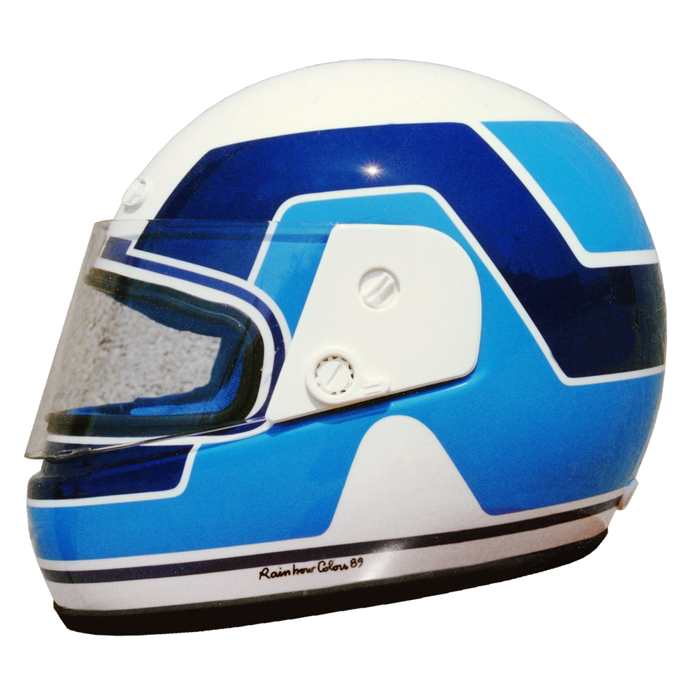 Formule 1 1989 Beppe GABBIANI #1 Casque Shoei ZRF-Z, peint par Christian Roux / Rainbow Colors en 1989 pour Beppe Gabbiani, Team Imberti, Italian Super Touring Car Championship. Précédent Suivant
