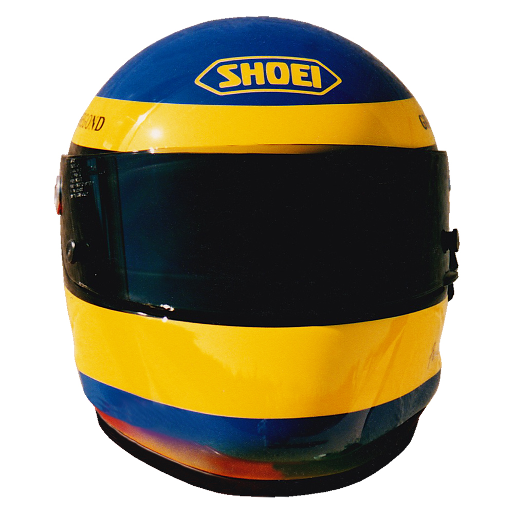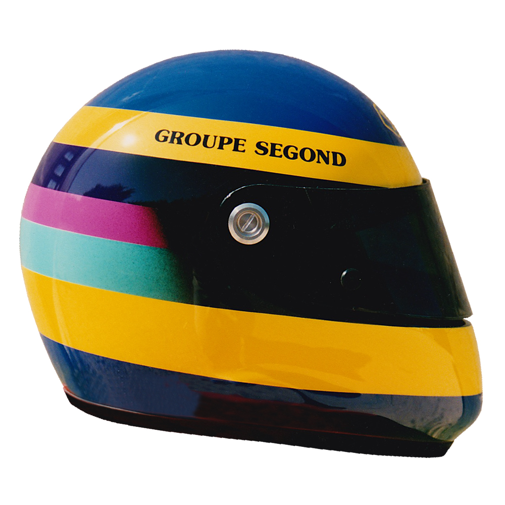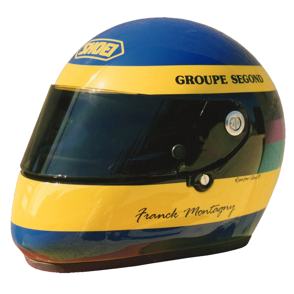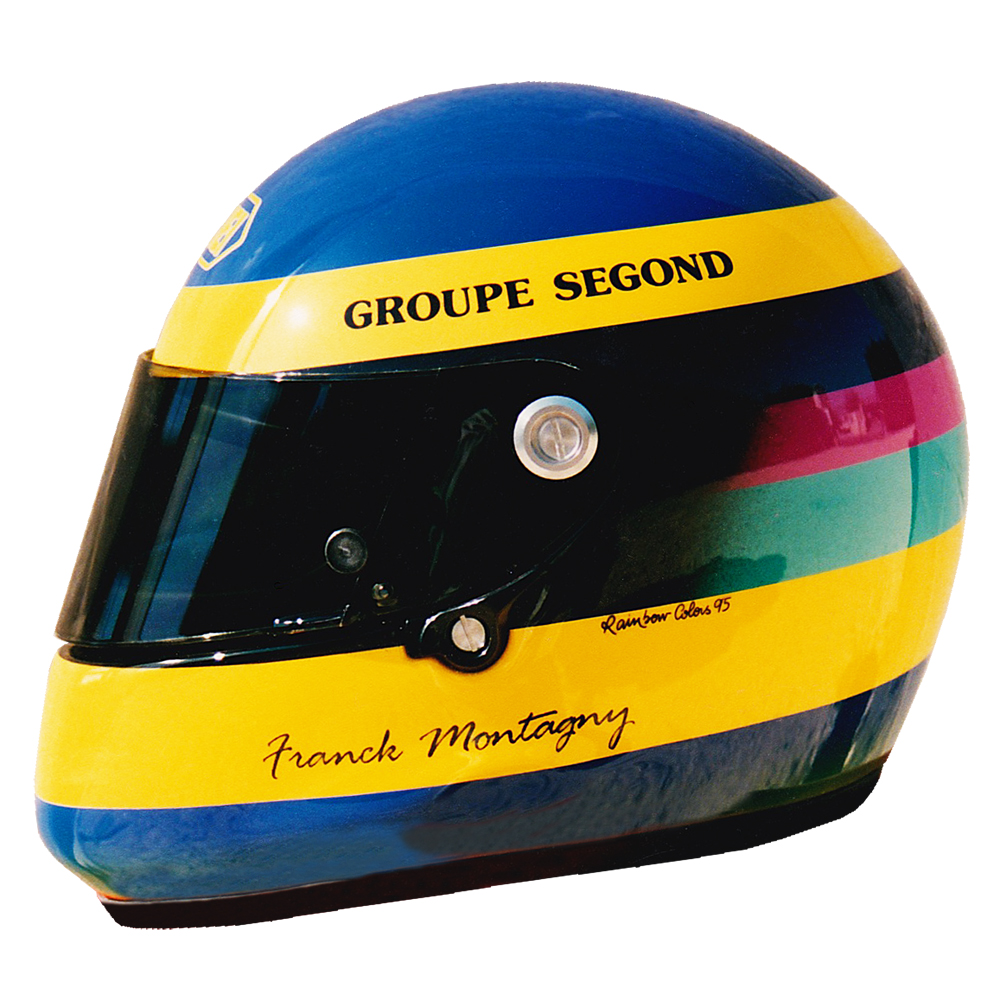 Formule 1 1995 Franck MONTAGNY Casque Shoei X 4, peint par Christian Roux / Rainbow Colors en 1995 pour Franck Montagny, Équipe Elf La Filière, 4ème Championnat de France de Formule Renault. Précédent Suivant
