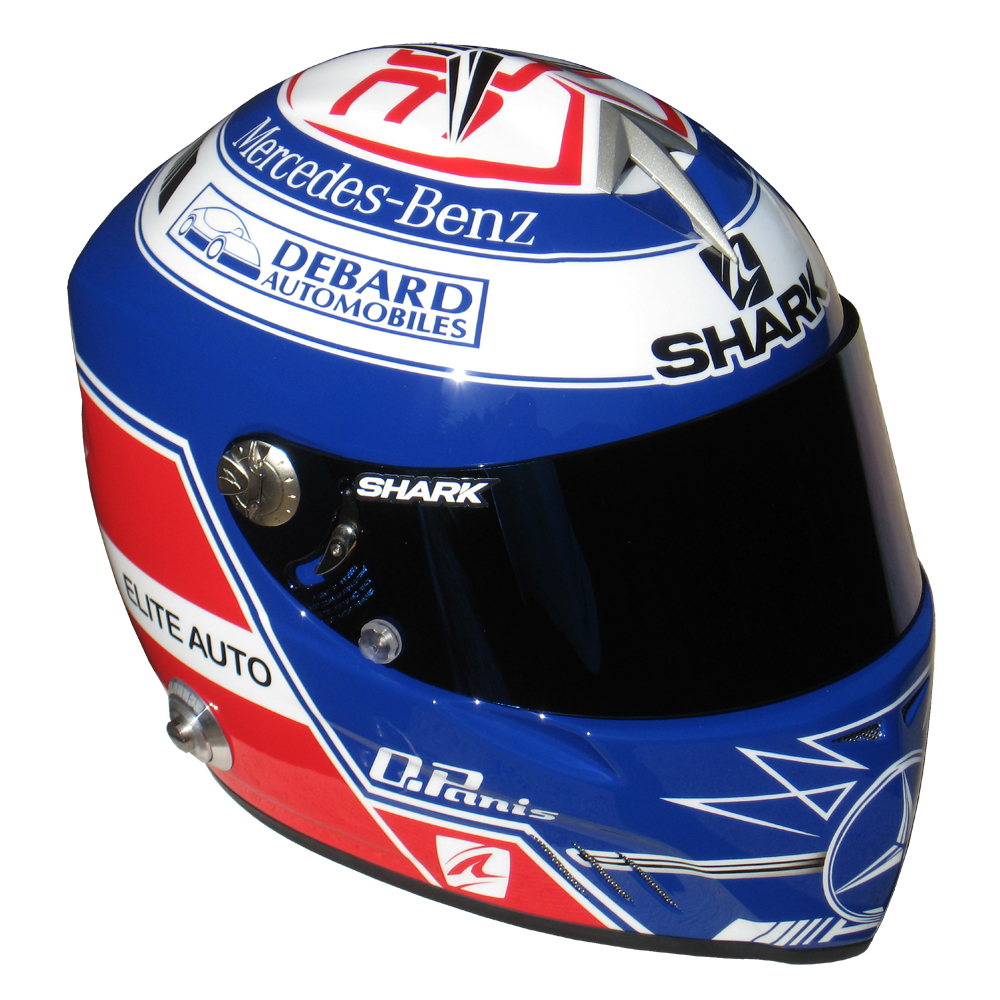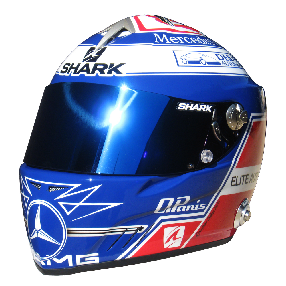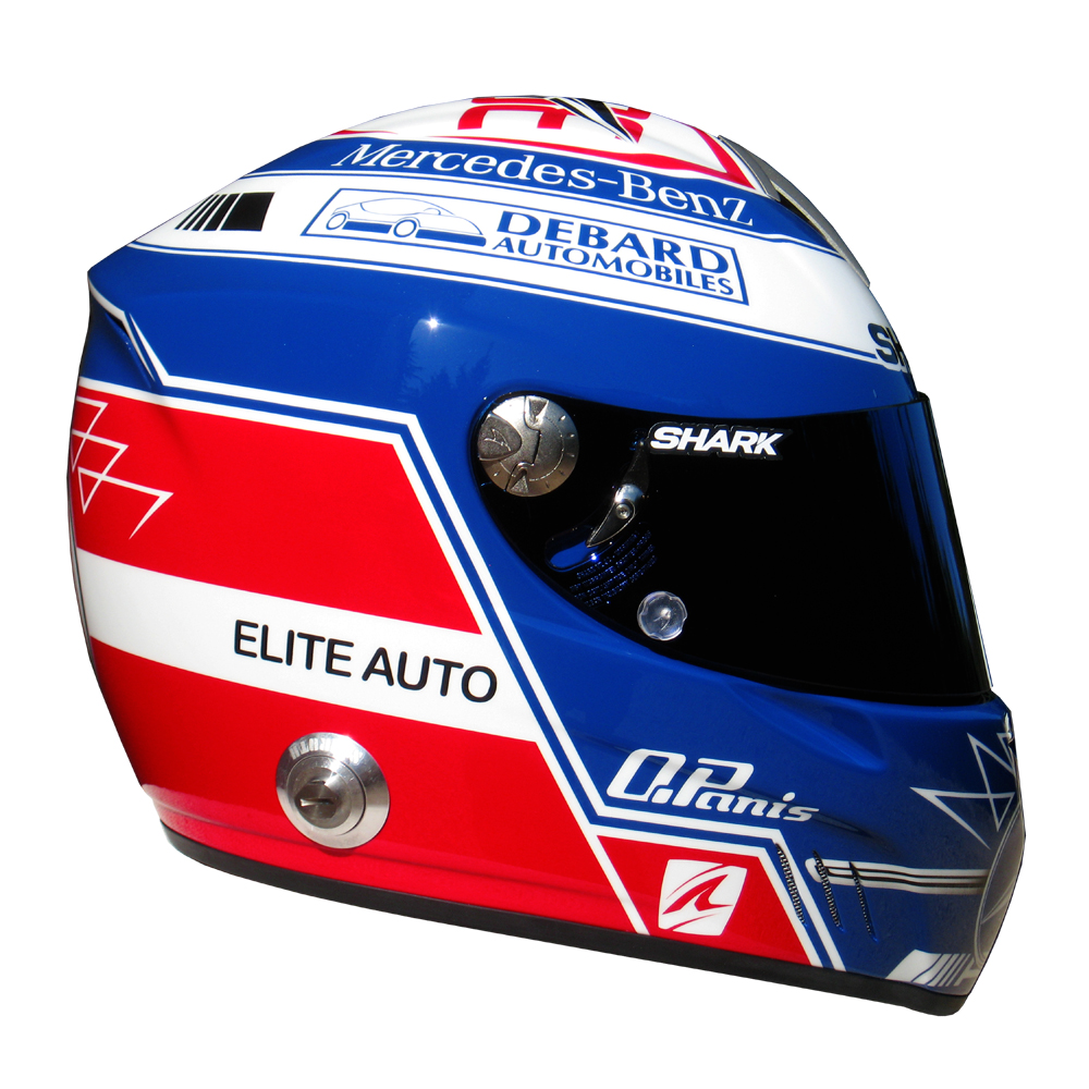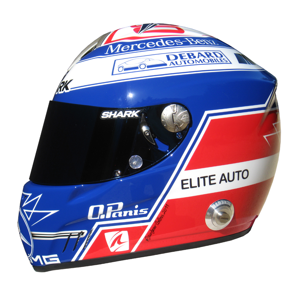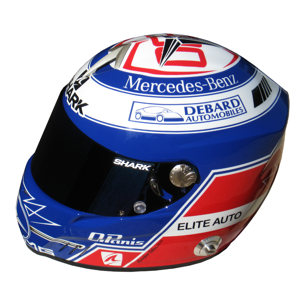 Formule 1 2011 Olivier PANIS #1 Casque Shark RS 4 F1, peint par Christian Roux / Rainbow Colors en 2011 pour Olivier Panis, Graff Racing, Championnat de France GT. Précédent Suivant