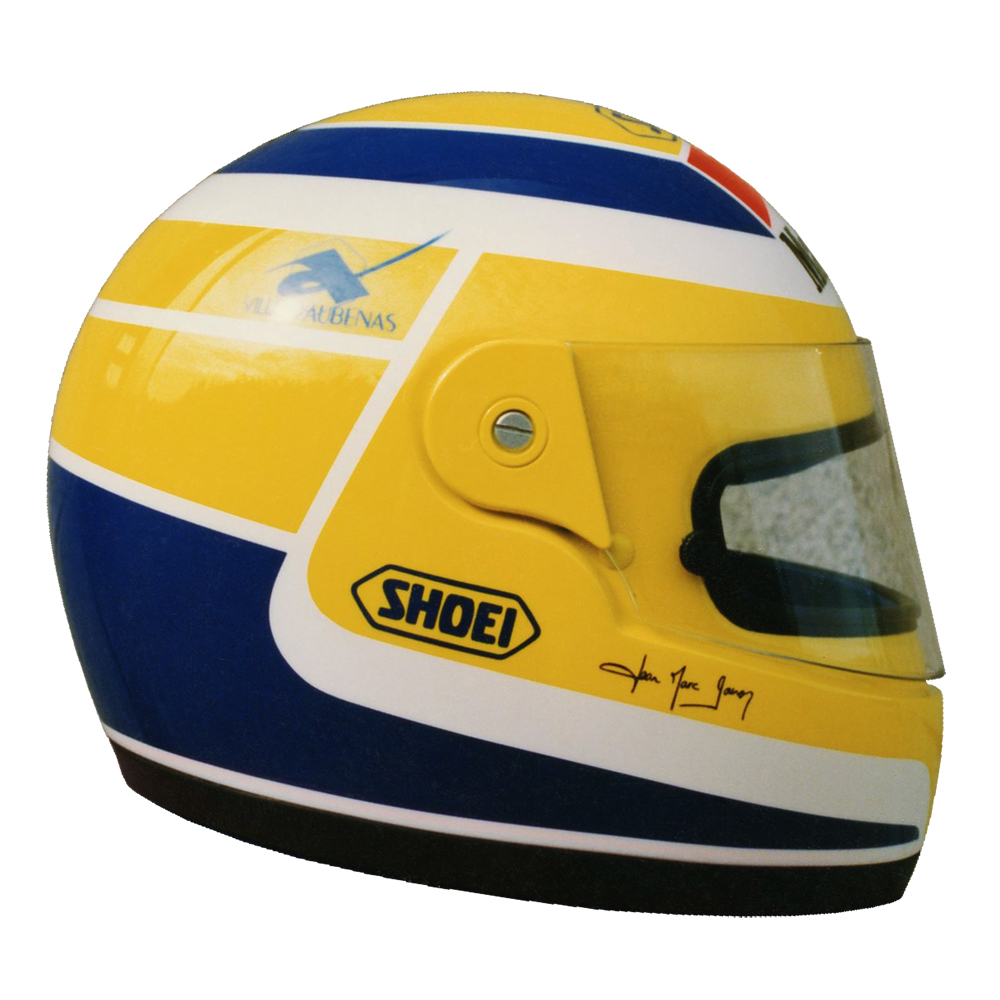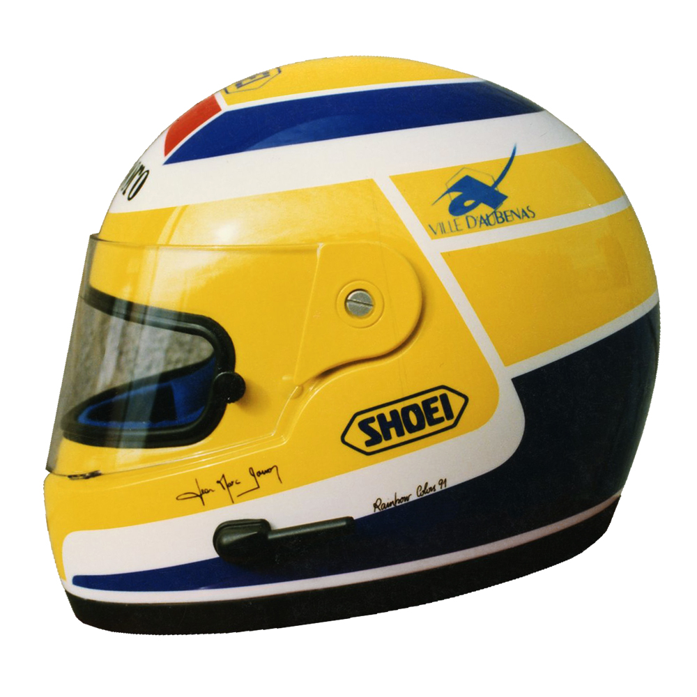 Formule 1 1991 Jean Marc GOUNON #1 Casque Shoei GRV 4, peint par Christian Roux / Rainbow Colors en 1991 pour Jean Marc Gounon, Team 3001 International, Championnat International de Formule 3000. Précédent Suivant