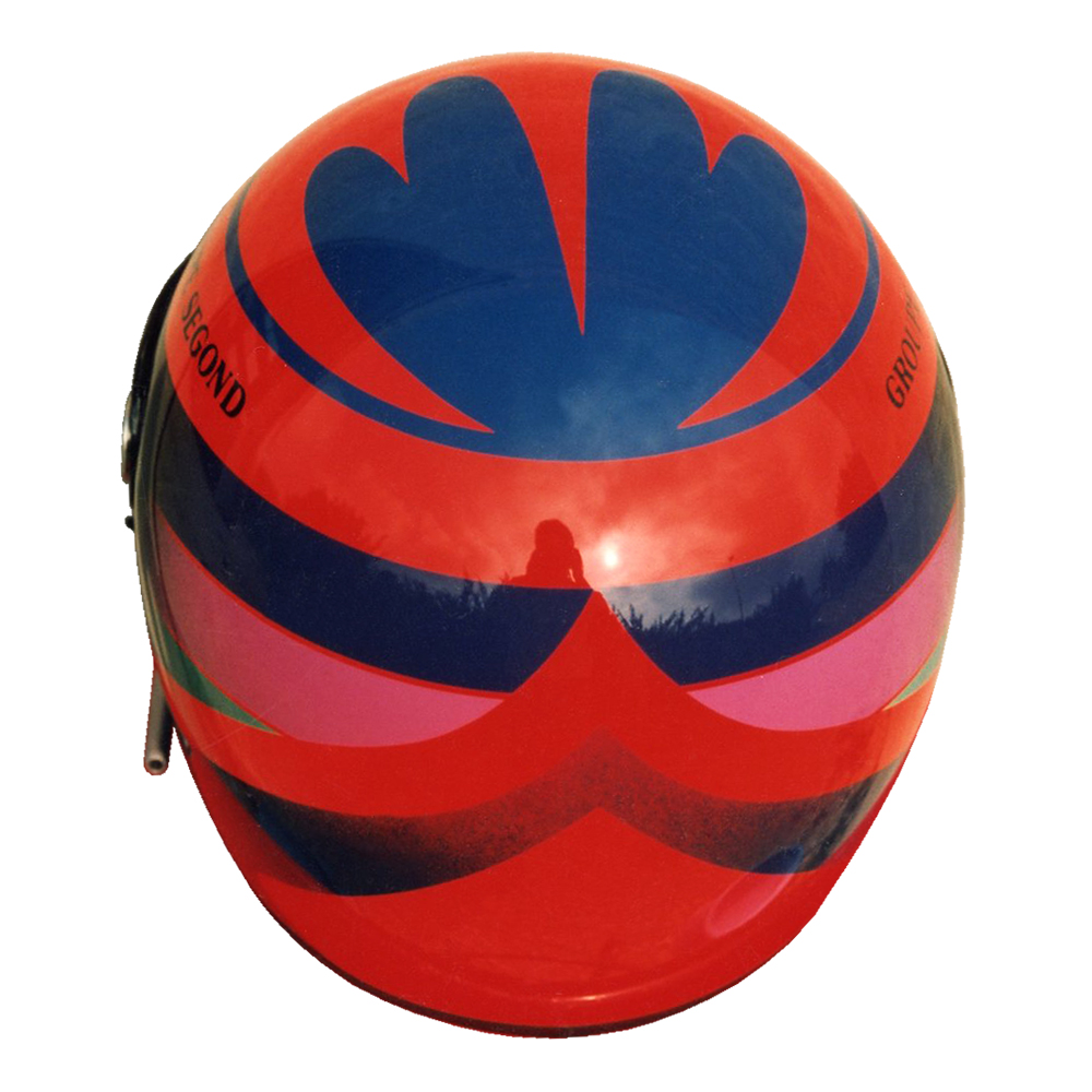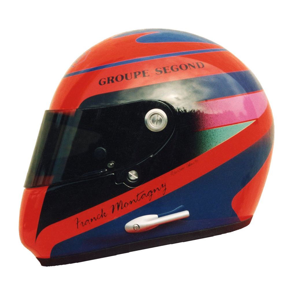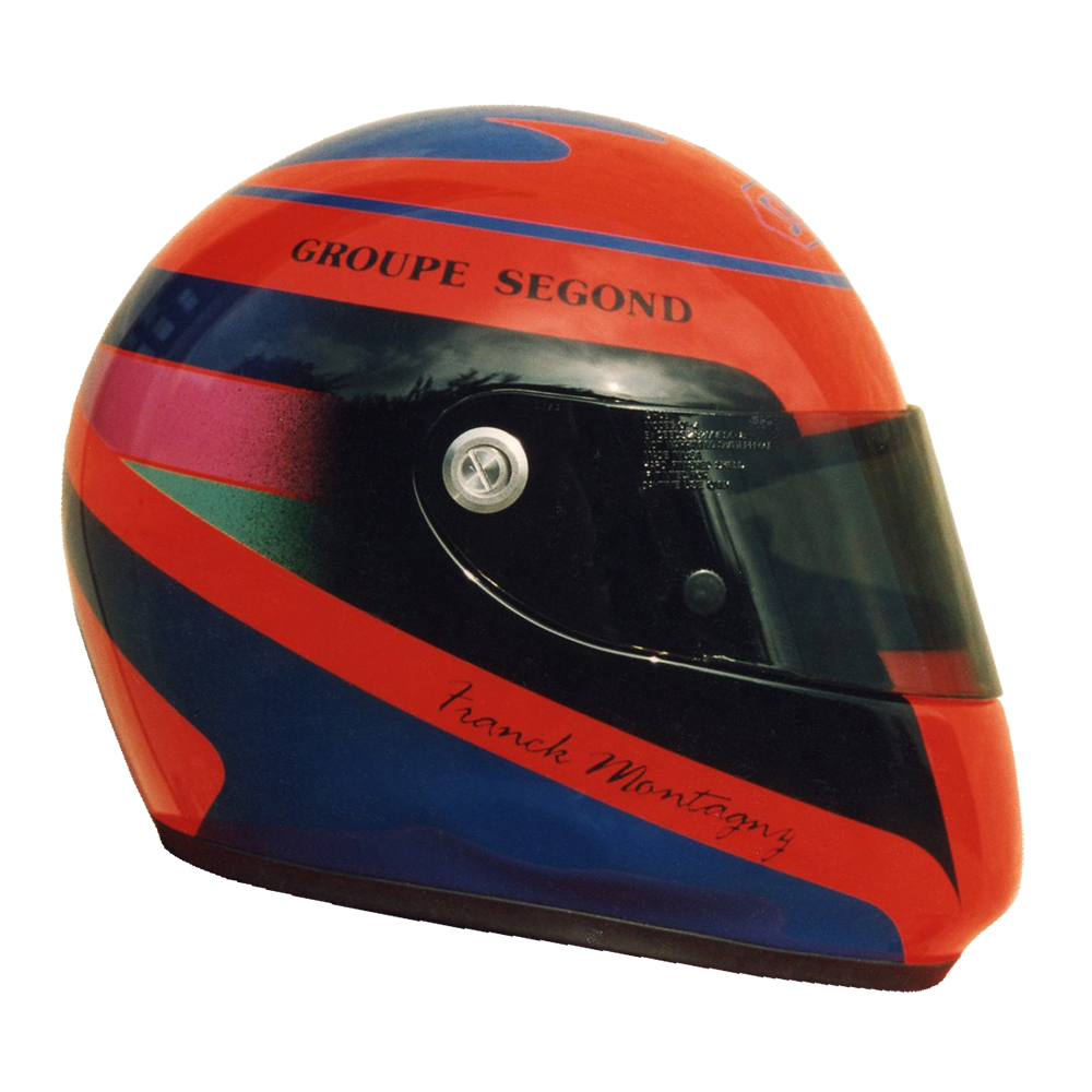 Formule 1 1996 Franck MONTAGNY Casque Shoei X 4, peint par Christian Roux / Rainbow Colors en 1996 pour Franck Montagny, Team Elf La Filière, Championnat de France de Formule 3. Précédent Suivant