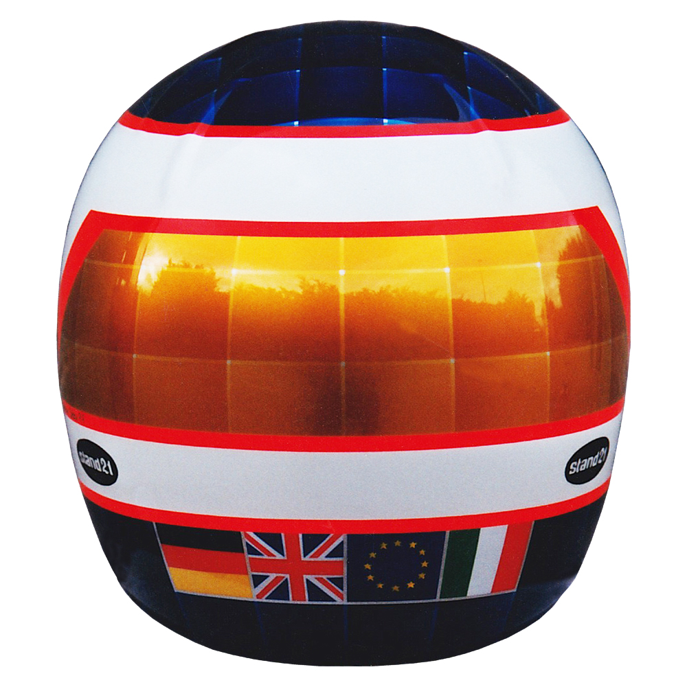 Formule 1 1999 Yannick DALMAS Casque Stand 21 F 21, peint par Christian Roux / Rainbow Colors en 1999 pour Yannick Dalmas, Team BMW Motorsport, Vainqueur des 67ème 24 Heures du Mans. Précédent Suivant