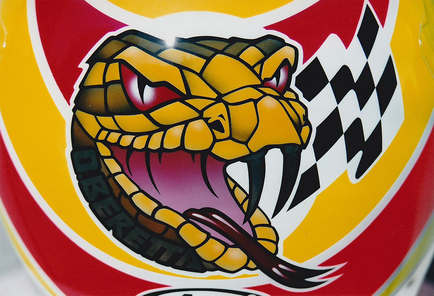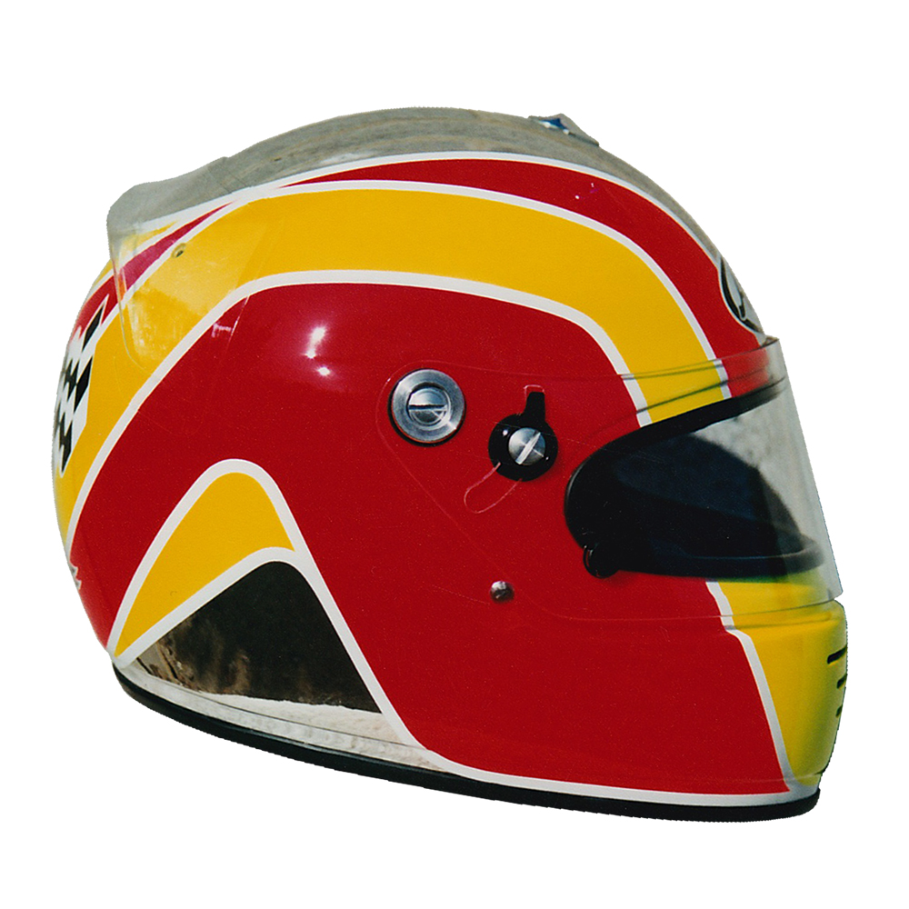Formule 1 2000 Olivier BERETTA Casque Arai GP 4, peint par Christian Roux / Rainbow Colors en 2000 pour Olivier Beretta, Dodge Viper Team Oreca, Vainqueur, des 24 Heures du Mans GTS, des 24 Heures de Daytona GTO, des America Le Mans Series GTS. Précédent Suivant