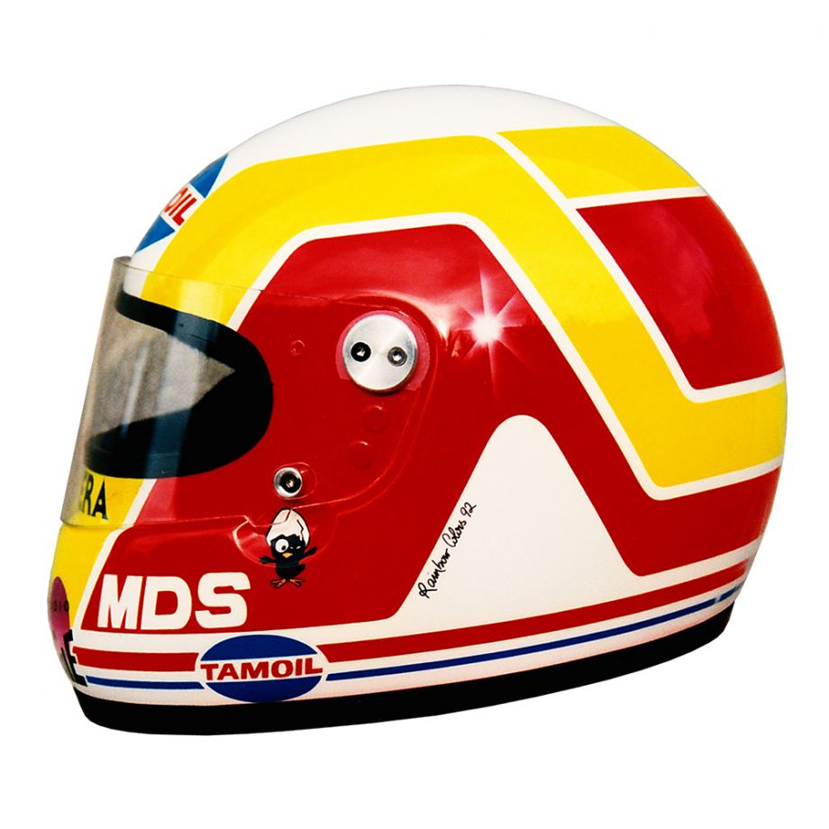 Retrouvez les casques des pilotes de sport automobile ayant participé aux Grands Prix de Formule 1 peints par Christian Roux / Rainbow Colors, au travers de nombreuses saisons et de leurs différentes disciplines, de René Arnoux à Charles Pic.