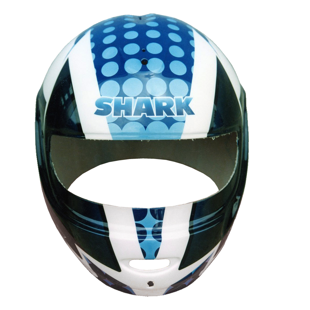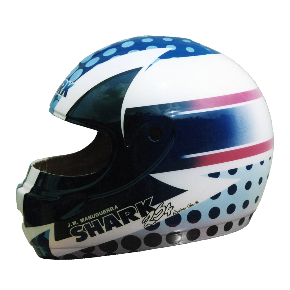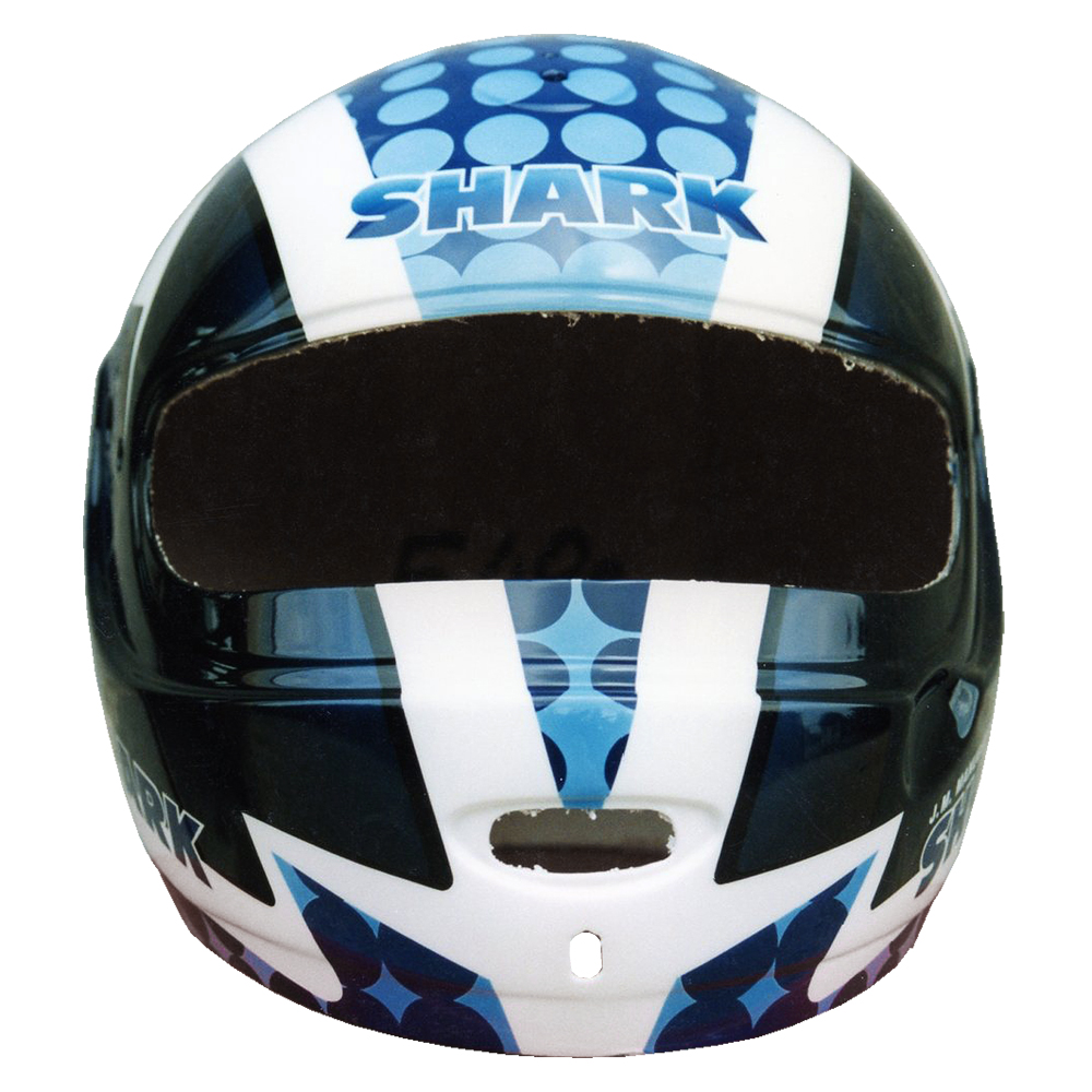 Karting 1996 Jean Marc MANUGUERRA Casque Shark RS4, crée et peint par Christian Roux / Rainbow Colors en 1996 pour Jean Marc Manuguerra. Précédent Suivant