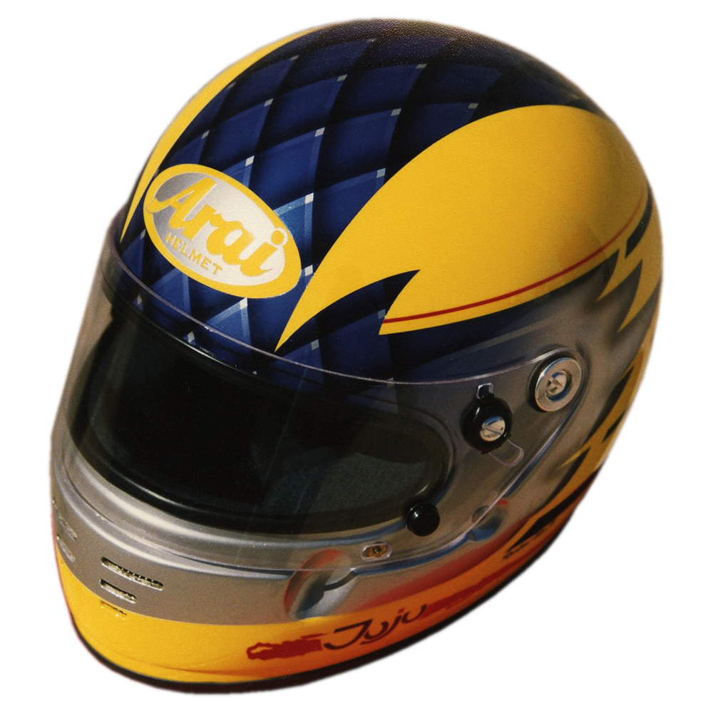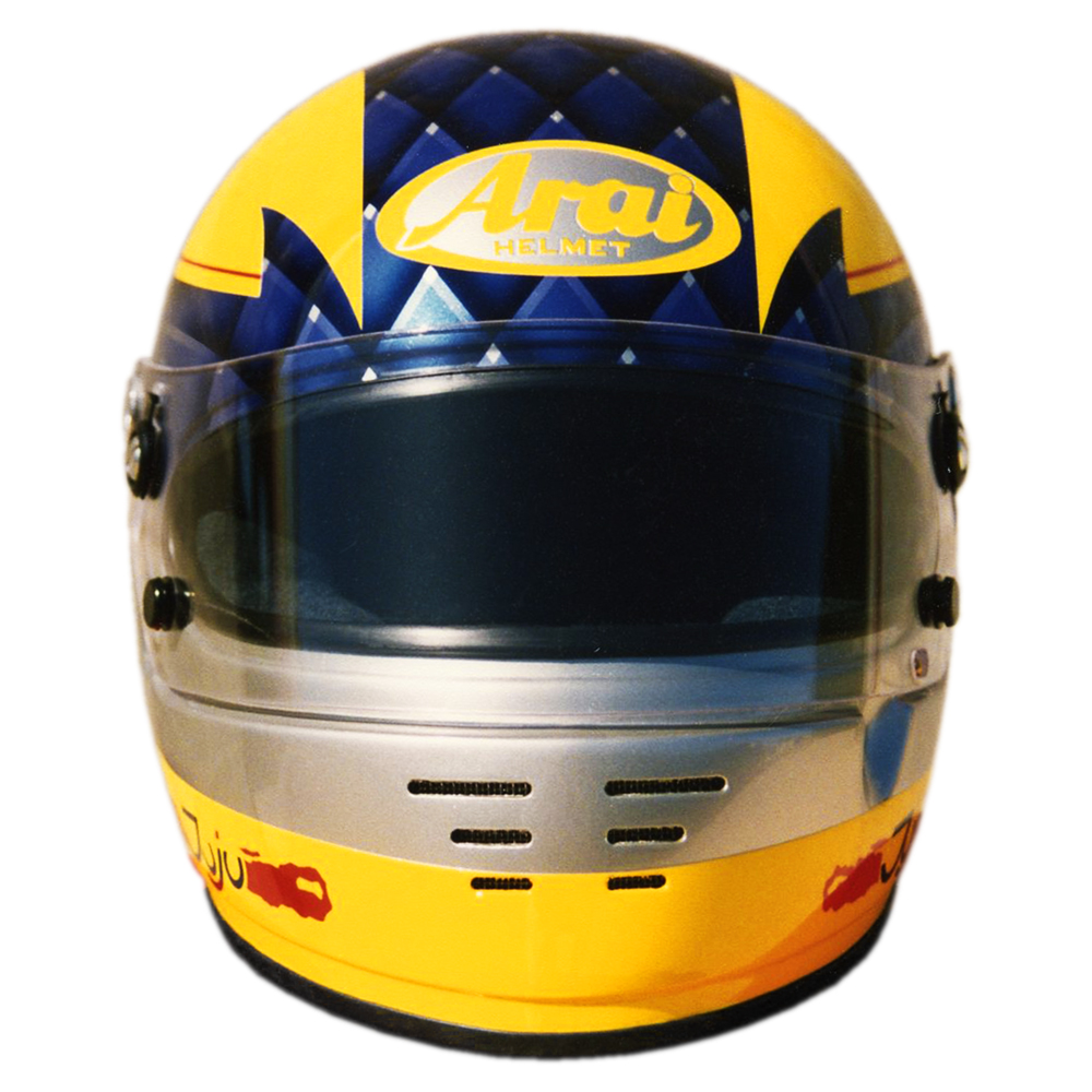Karting 1995 Julien ANDRÉ Casque Arai GP 3, crée et peint par Christian Roux / Rainbow Colors en 1995 pour Julien André. Précédent Suivant
