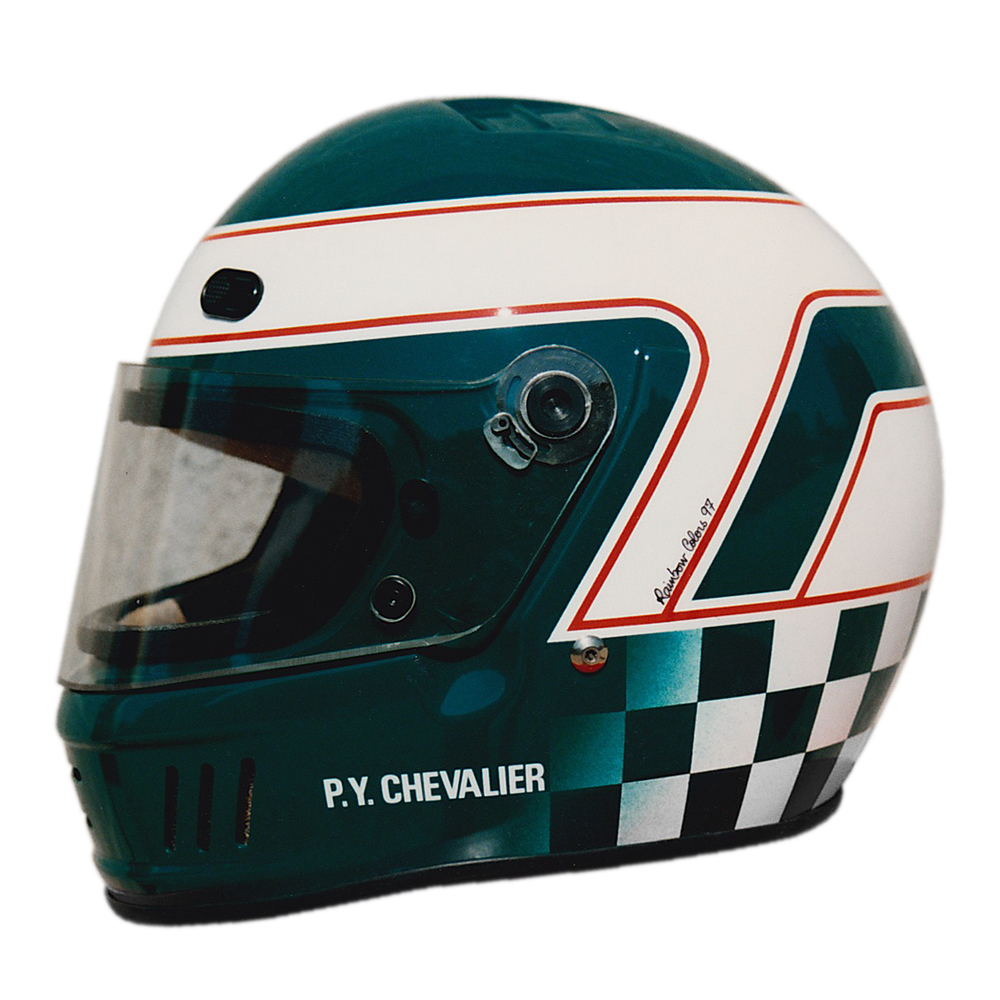 Karting 1997 Pierre Yves CHEVALIER Casque Bell Sport 2, peint par Christian Roux / Rainbow Colors en 1997 pour Pierre Yves Chevalier, Planète Karting Lyon. Précédent Suivant