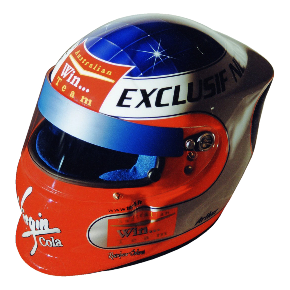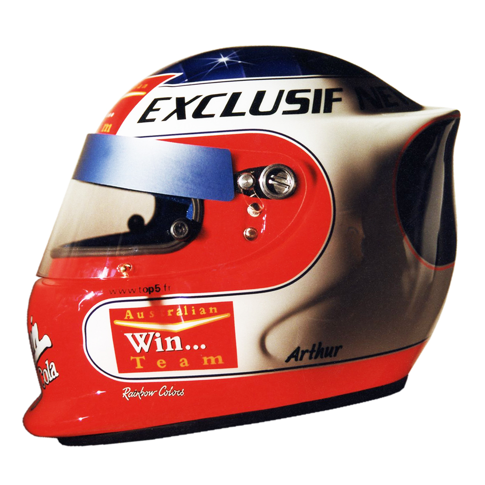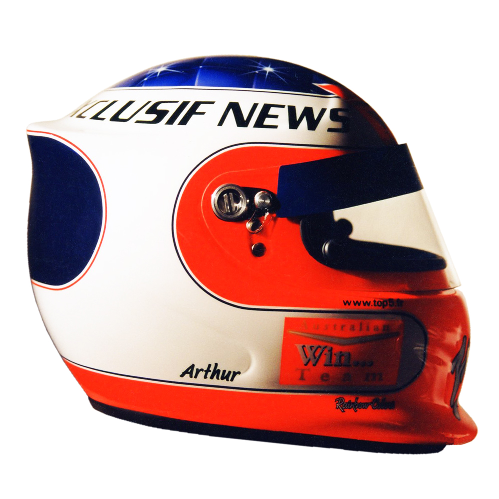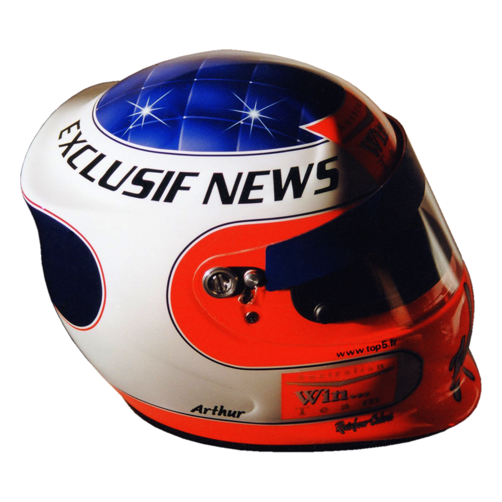 Karting 1999 “ARTHUR“ Casque Bieffe Air Concept, peint par Christian Roux / Rainbow Colors en 1999 pour Jacques Essebag “ARTHUR“ pour les Masters de Kating de Paris Bercy. Précédent Suivant