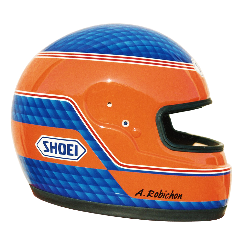 Karting 1995 Antoine ROBICHON Casque Shoei GRV 4, peint par Christian Roux / Rainbow Colors en 1995 pour Antoine Robichon. Précédent Suivant