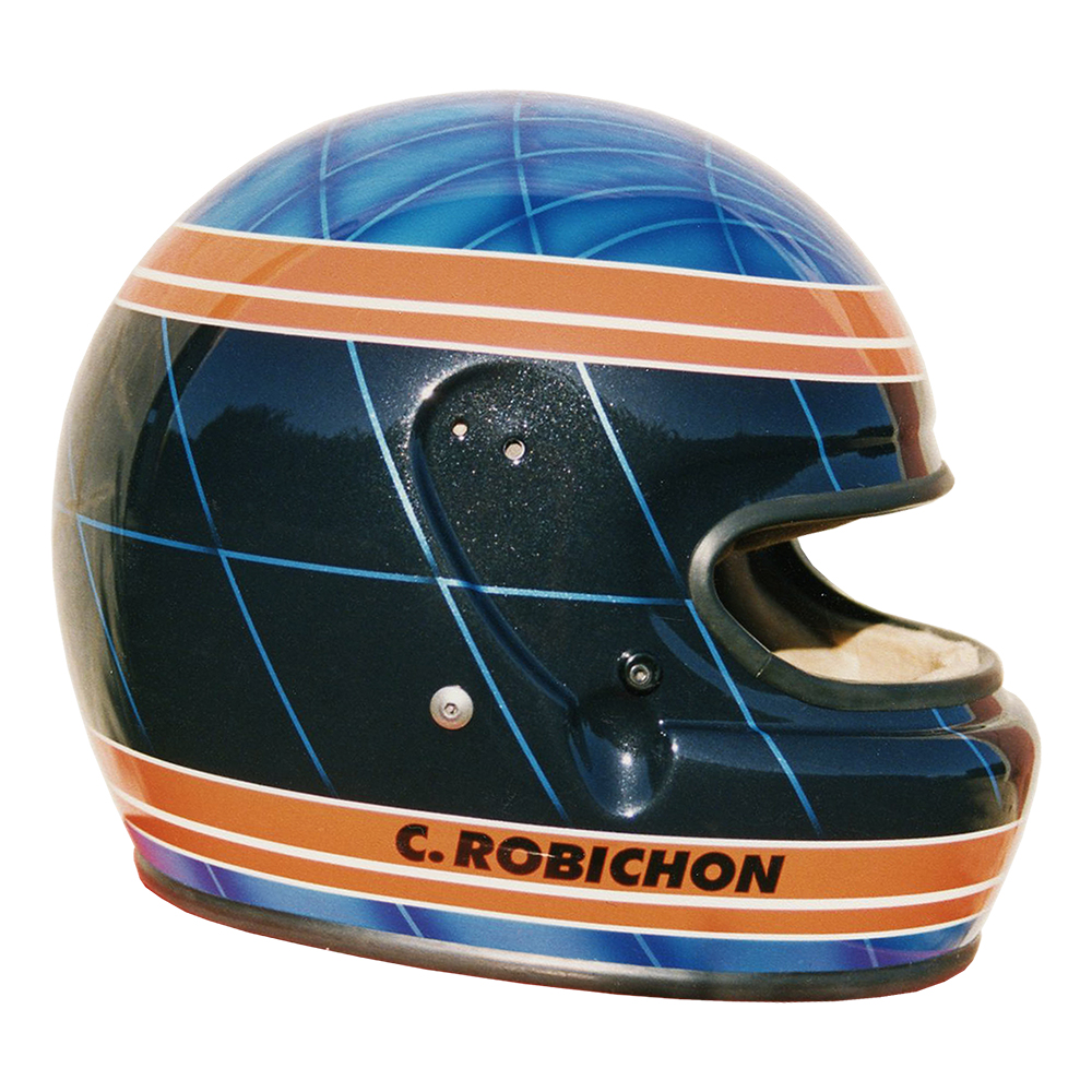 Karting 1995 Christophe ROBICHON Casque Bell XFM-1, peint par Christian Roux / Rainbow Colors en 1995 pour Christophe Robichon. Précédent Suivant