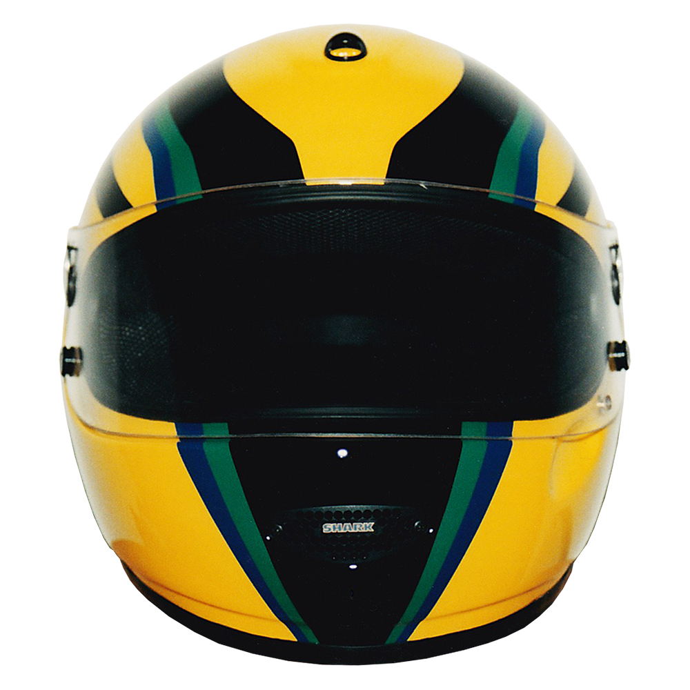 Karting 1996 Eric JEANNOU Casque Shark RS, peint par Christian Roux / Rainbow Colors en 1996 pour Eric Jeannou. Précédent Suivant