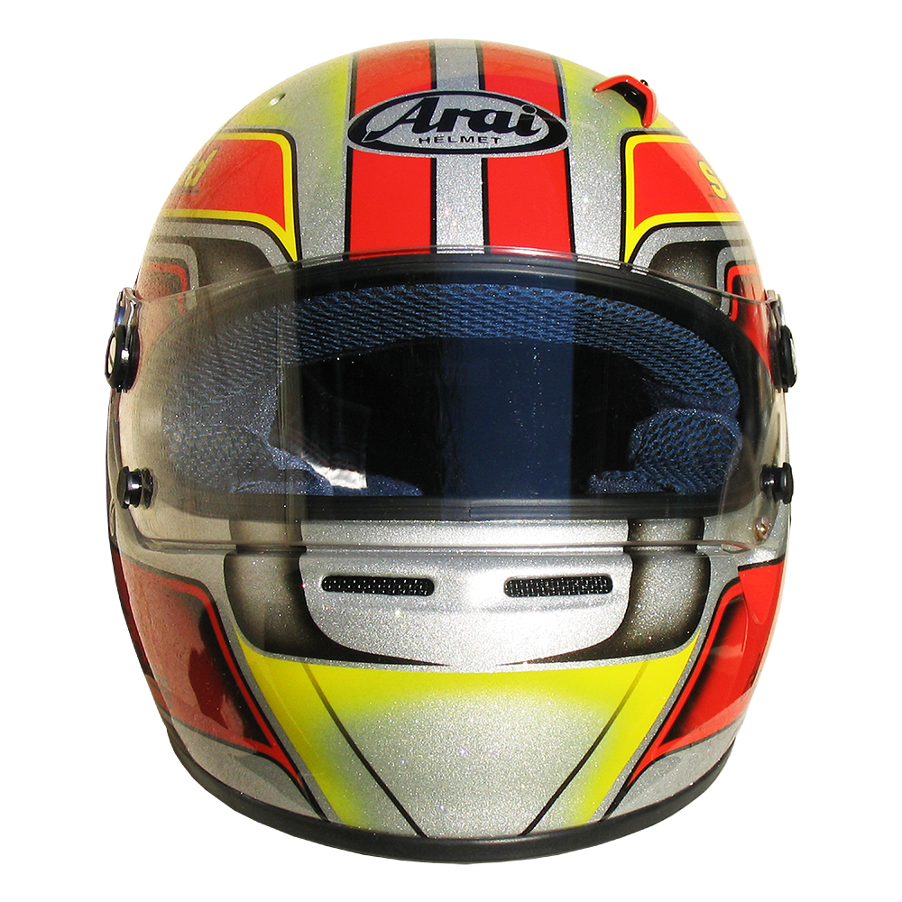 Karting 2006 Arnaud HUTTING Casque Arai SK 5, crée et peint par Christian Roux / Rainbow Colors en 2006 pour Arnaud Hutting. Précédent Suivant