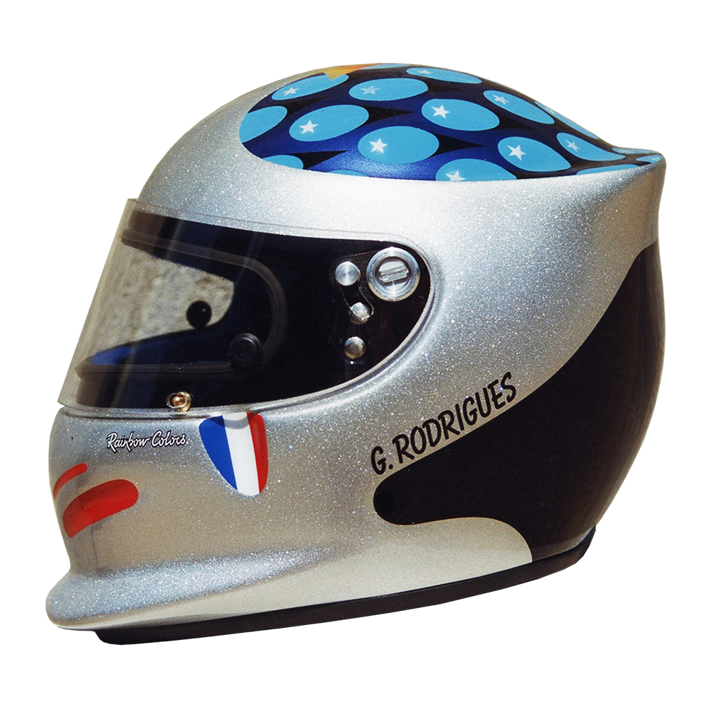 Karting 1999 Gilles RODRIGUES Casque Bieffe Air Concept, peint par Christian Roux / Rainbow Colors en 1999 pour Gilles Rodrigues. Précédent Suivant