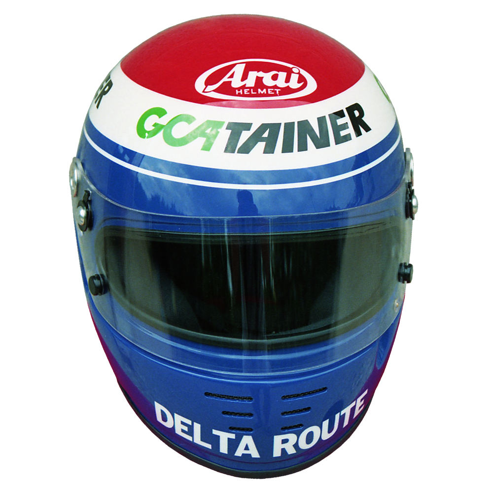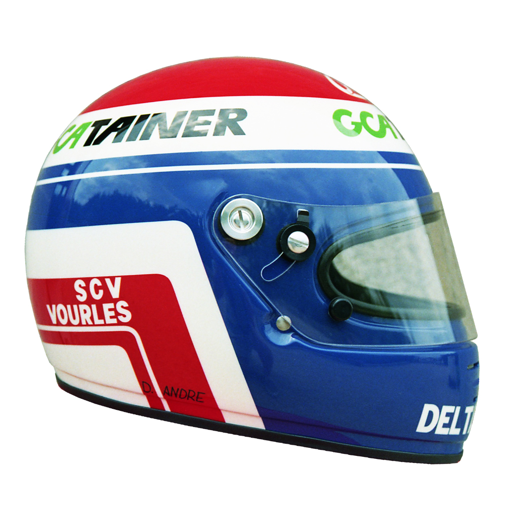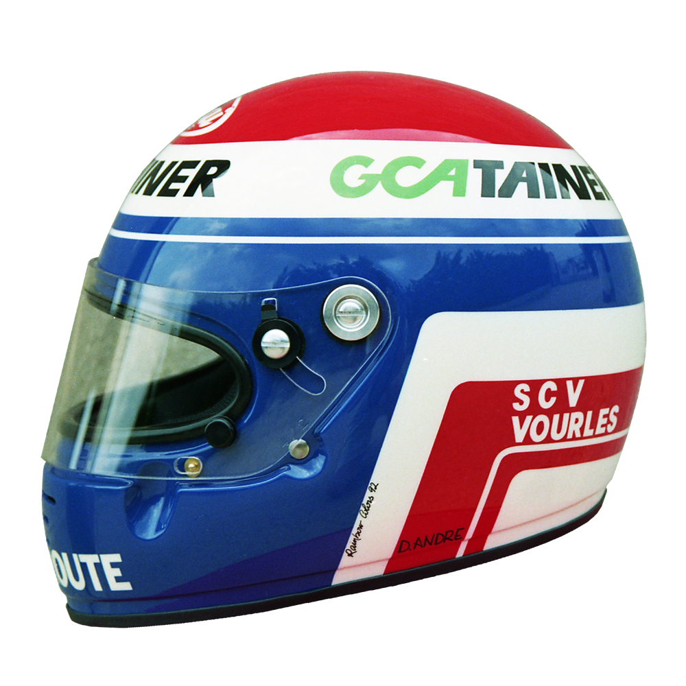 Karting 1992 Didier ANDRÉ Casque Arai GP 3, peint par Christian Roux / Rainbow Colors en 1992 pour Didier André, Champion de France de Karting. Précédent Suivant