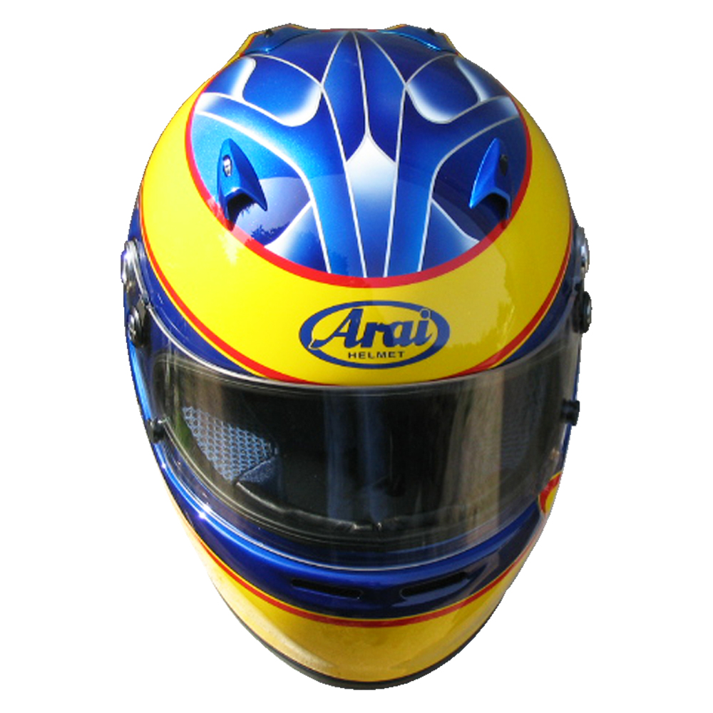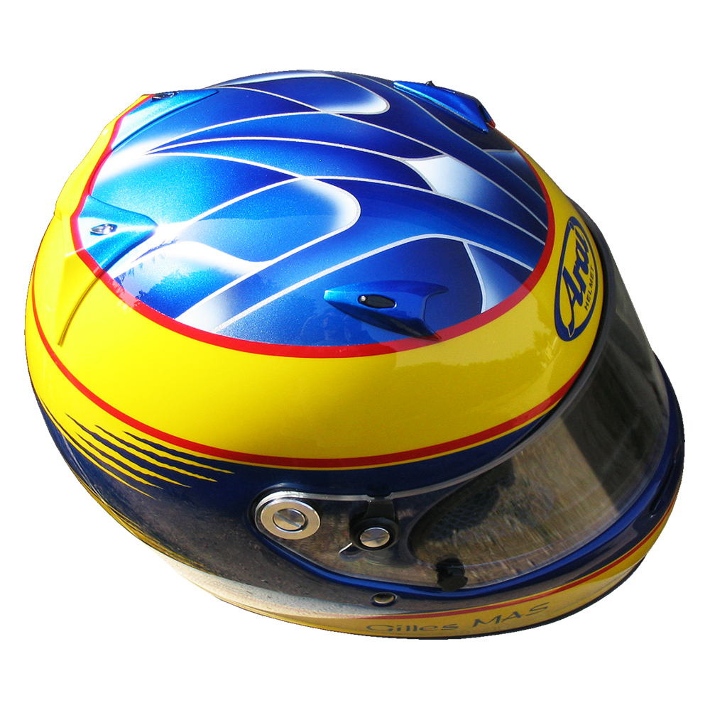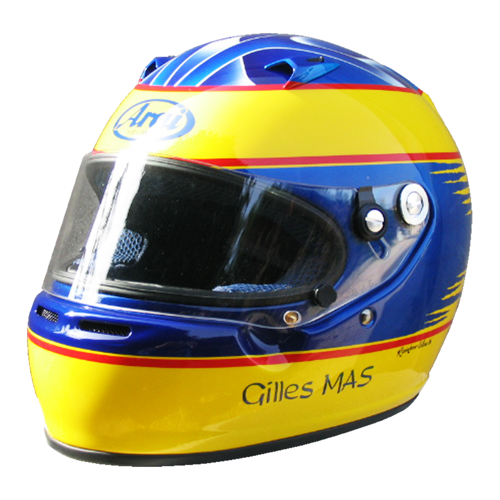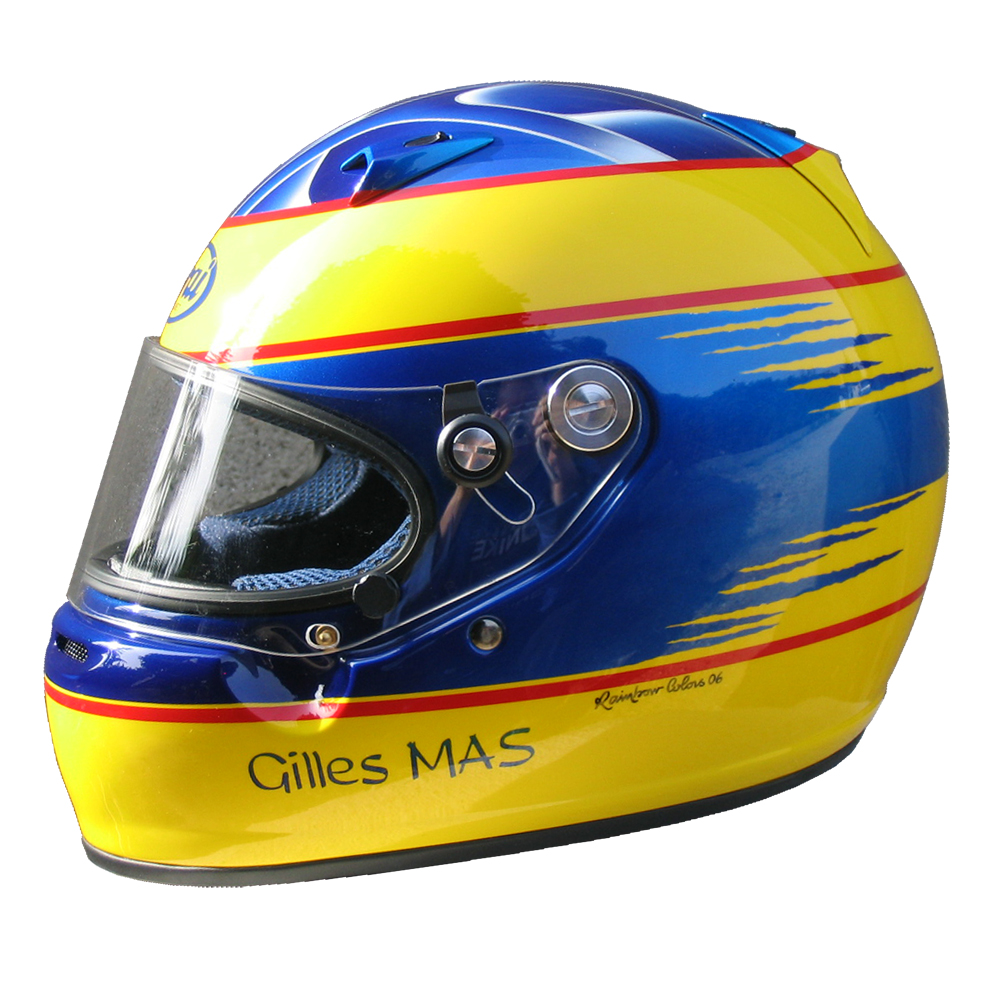 Karting 2006 Gilles MAS Casque Arai SK 5, peint par Christian Roux / Rainbow Colors en 2006 pour Gilles Mas. Précédent Suivant