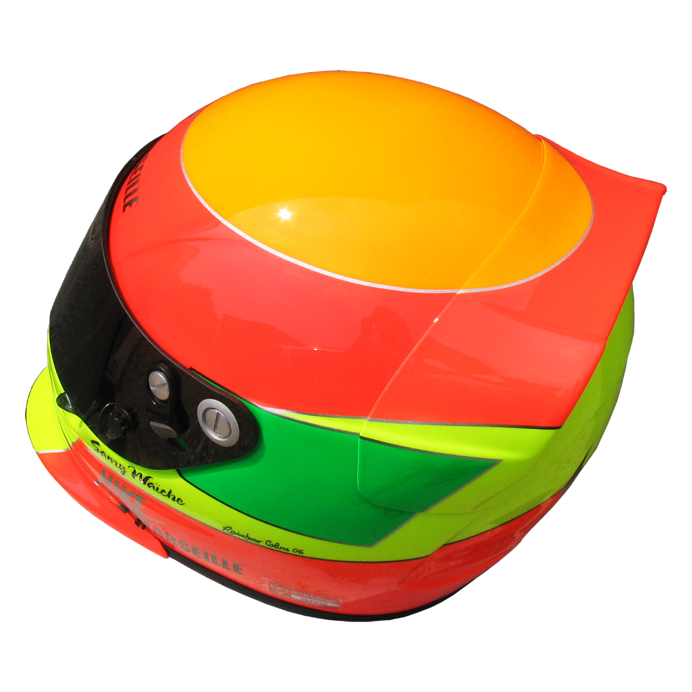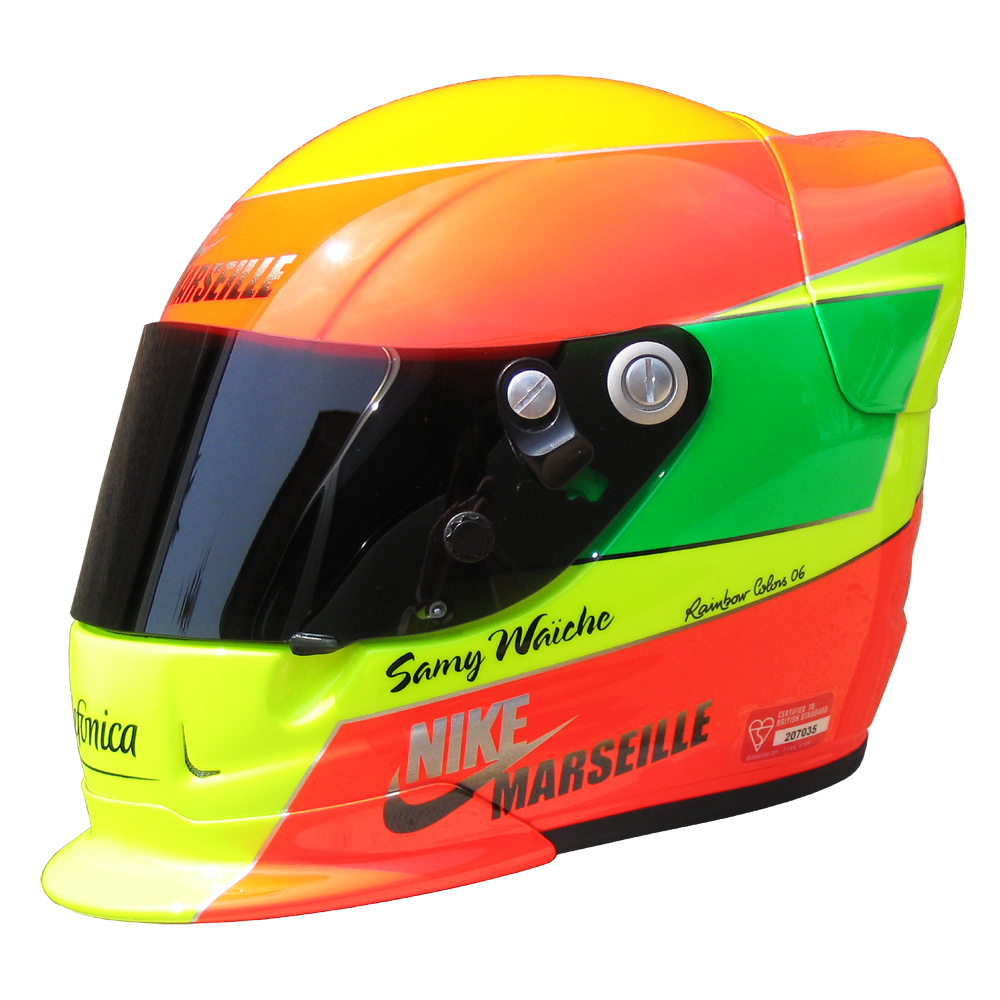 Karting 2006 Samy WAICHE Casque Sparco Formula, peint par Christian Roux / Rainbow Colors en 2006 pour Samy Waiche. Précédent Suivant
