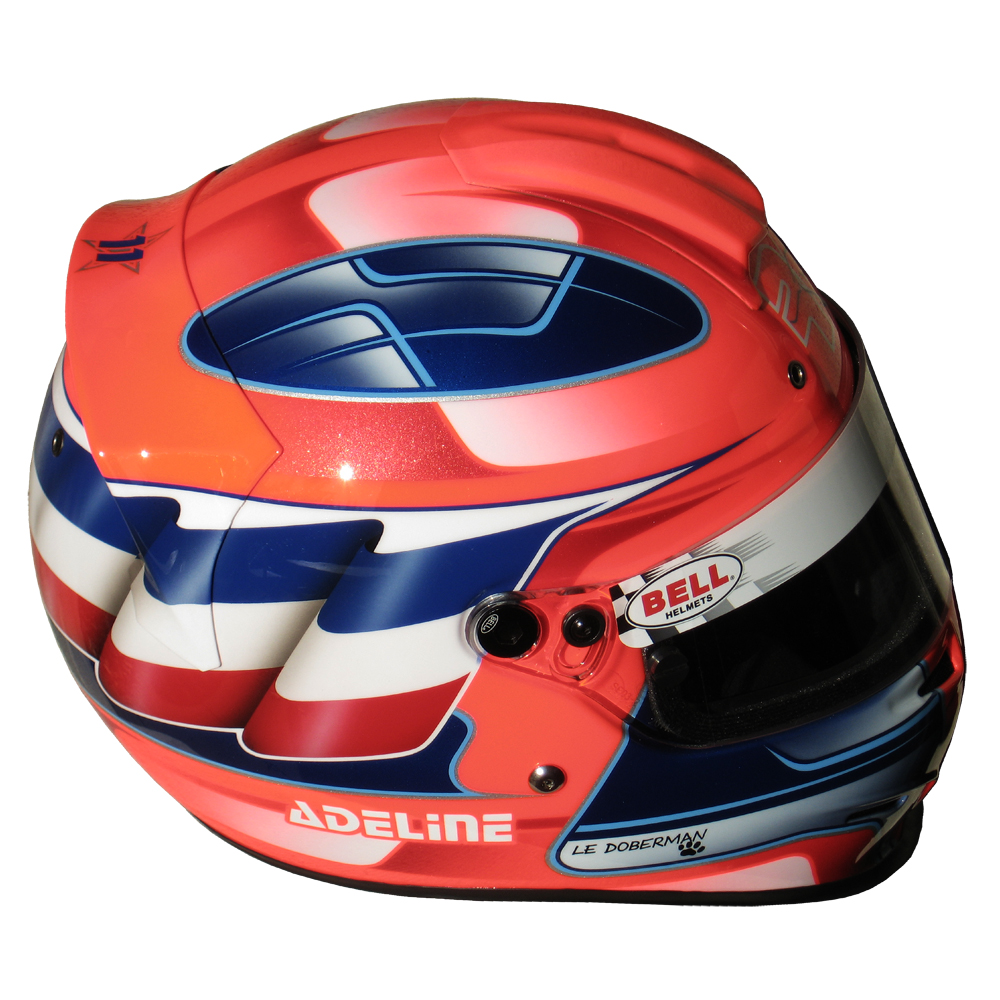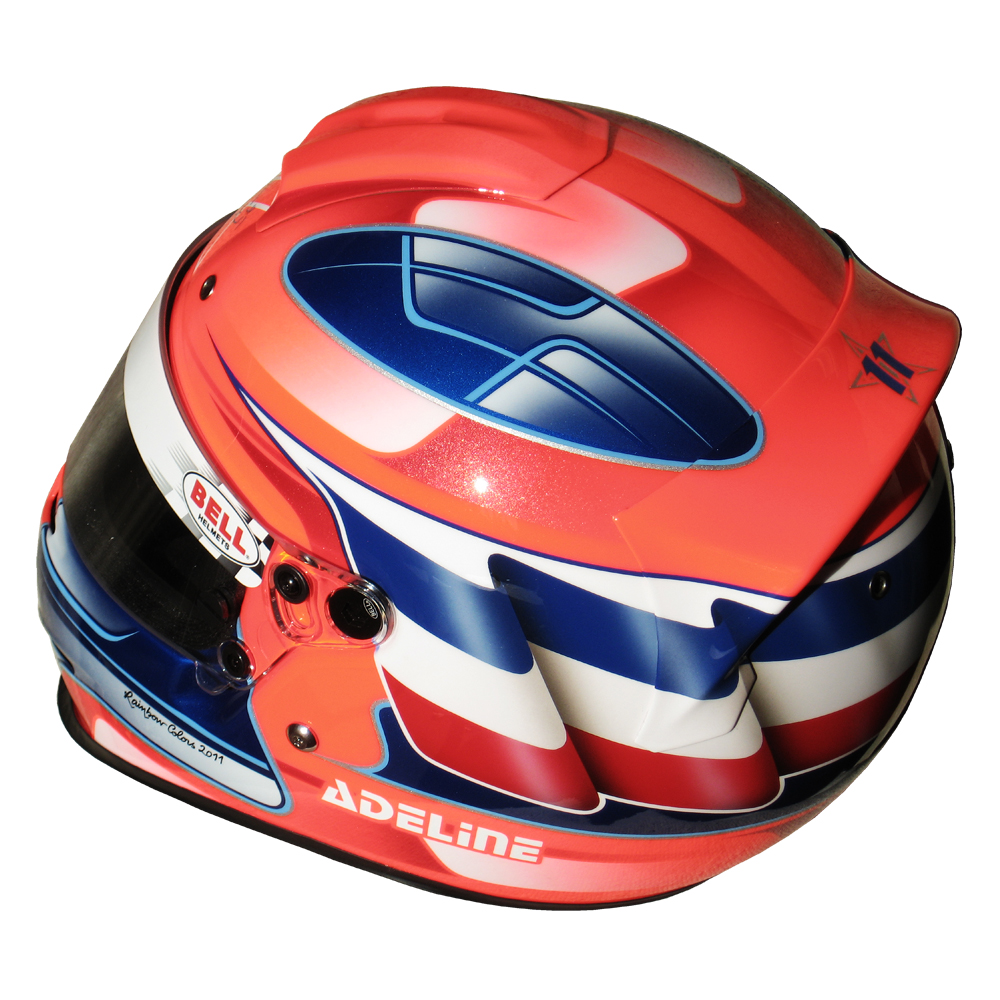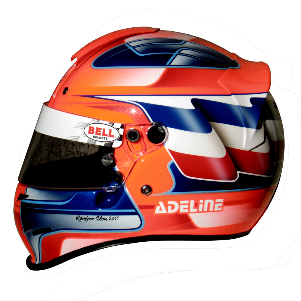 Karting 2011 Adeline PRUDENT Casque Bell KC 3, peint par Christian Roux / Rainbow Colors en 2011 pour Adeline Prudent, Team CRG RK Compétition, Victorieuse de la Coupe de France Féminine. Précédent Suivant