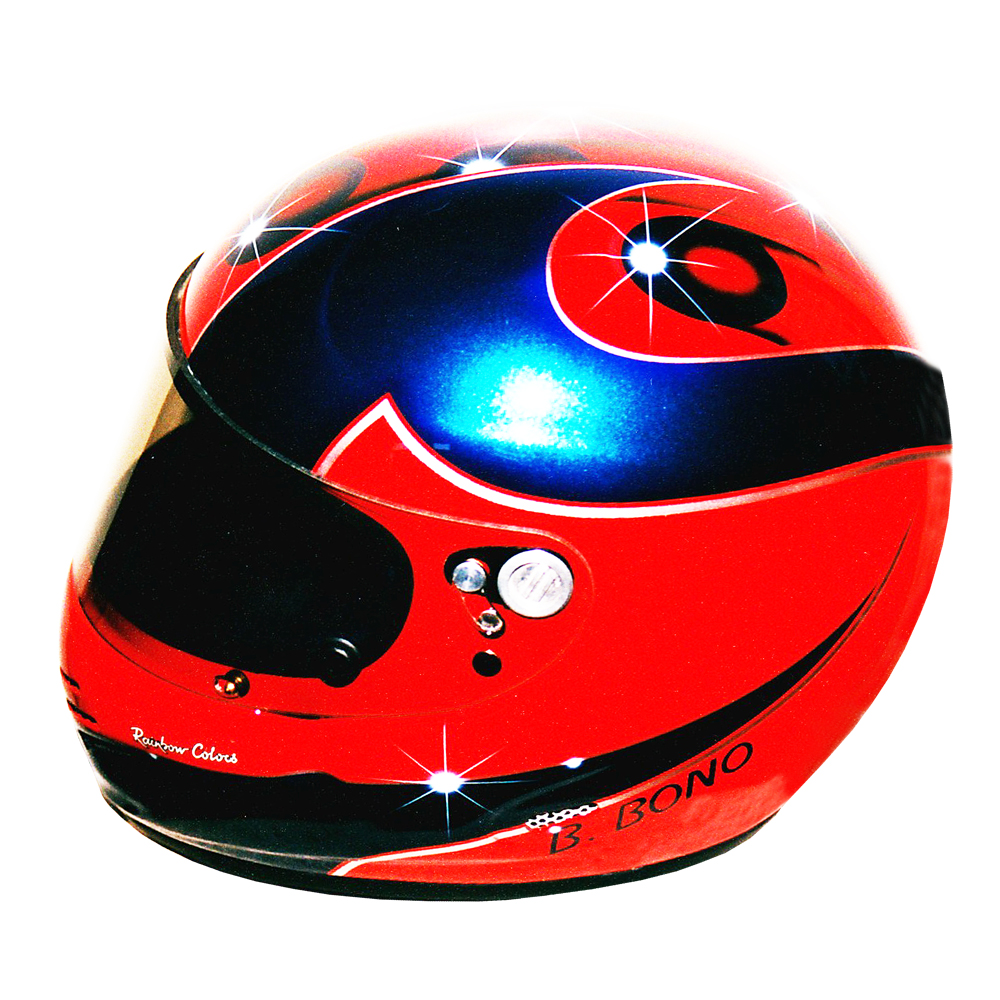 Karting 2001 Bastien BONO Casque Bieffe Predator, peint par Christian Roux / Rainbow Colors en 2001 pour Bastien Bono. Précédent Suivant