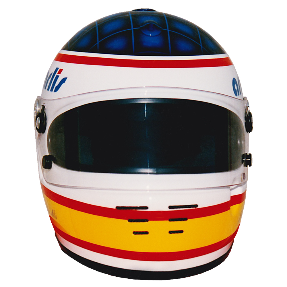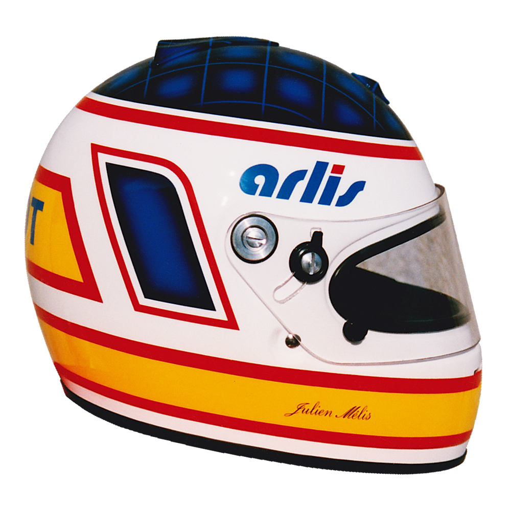 Karting 1997 Julien MÉLIS Casque Arai GP 2, peint par Christian Roux / Rainbow Colors en 1997 pour Julien Mélis, Championnat du Monde Formule A. Précédent Suivant