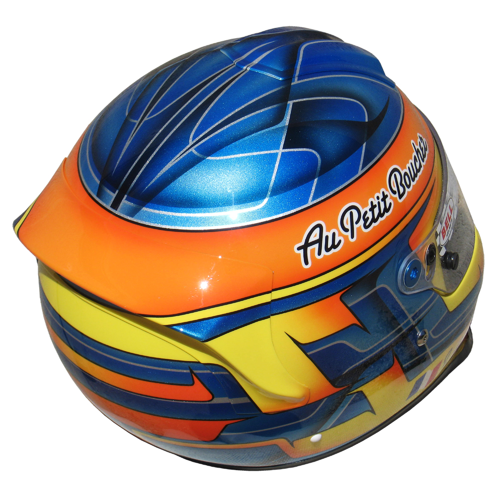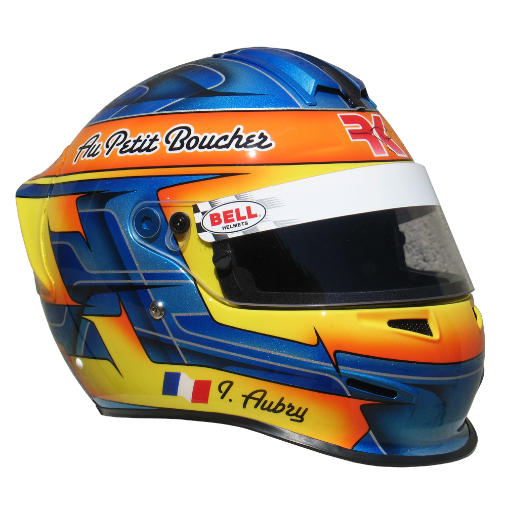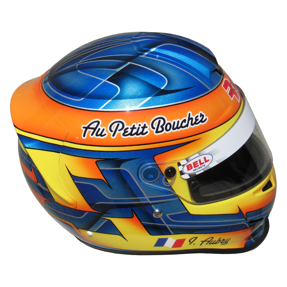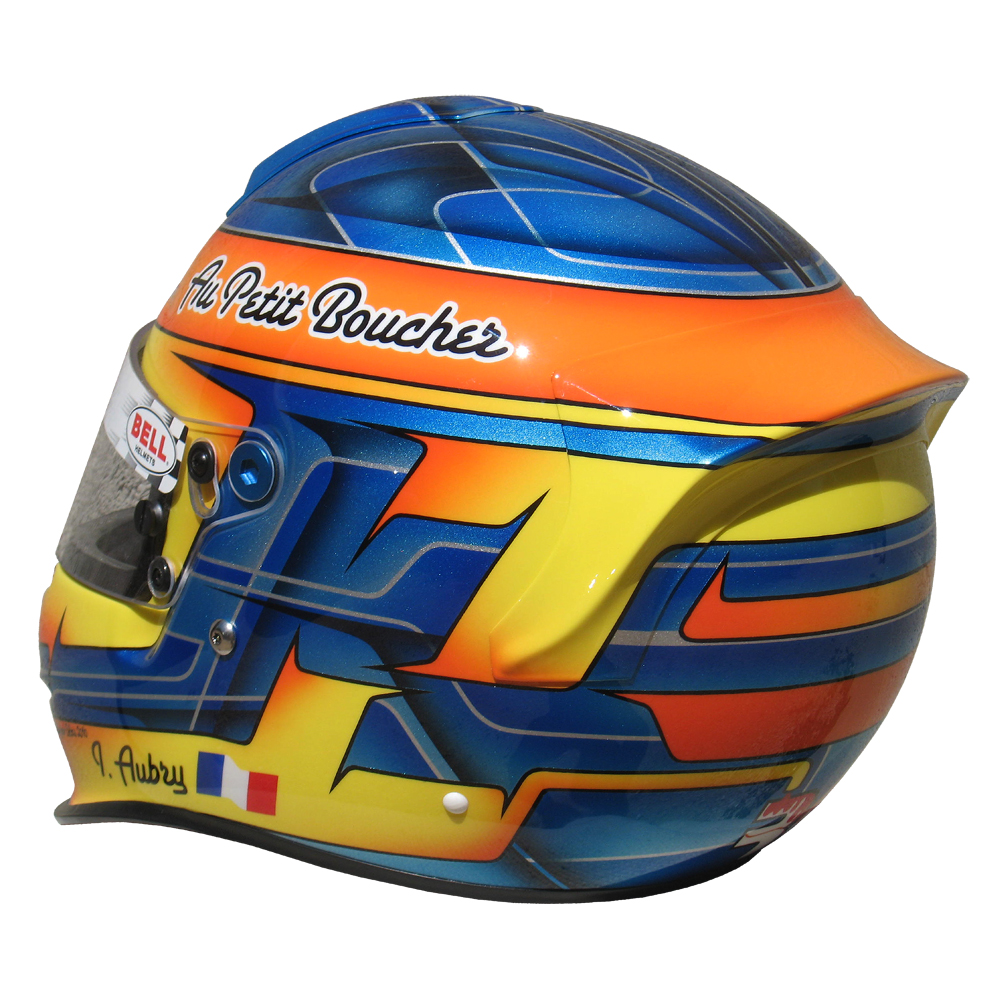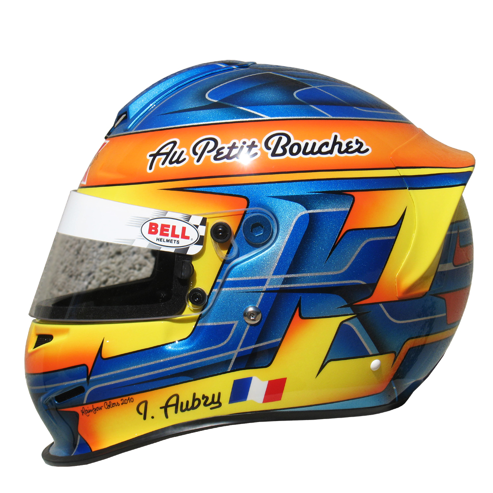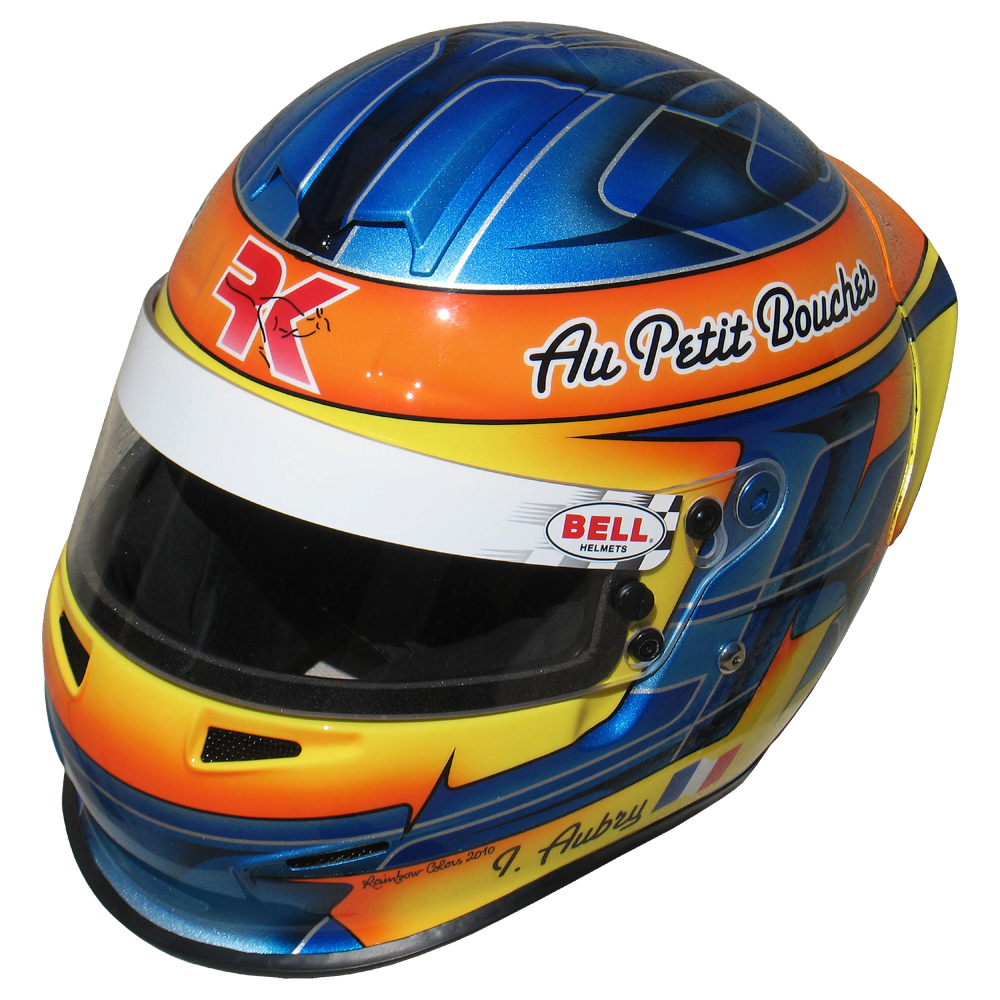 Karting 2010 Ivan AUBRY Casque Bell RS 3, peint pa Christian Roux / Rainbow Colors en 2010 pour Ivan Aubry, Team RK Compétition, KZ 125. Précédent Suivant