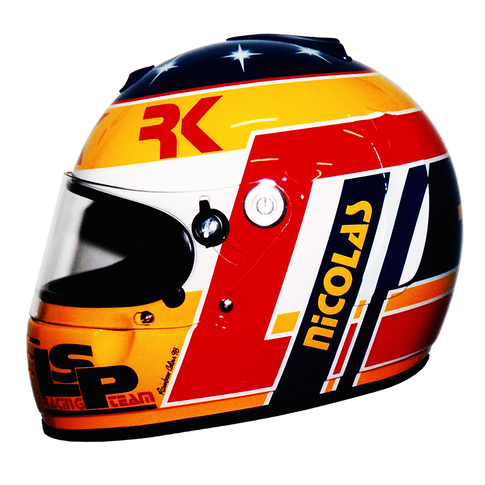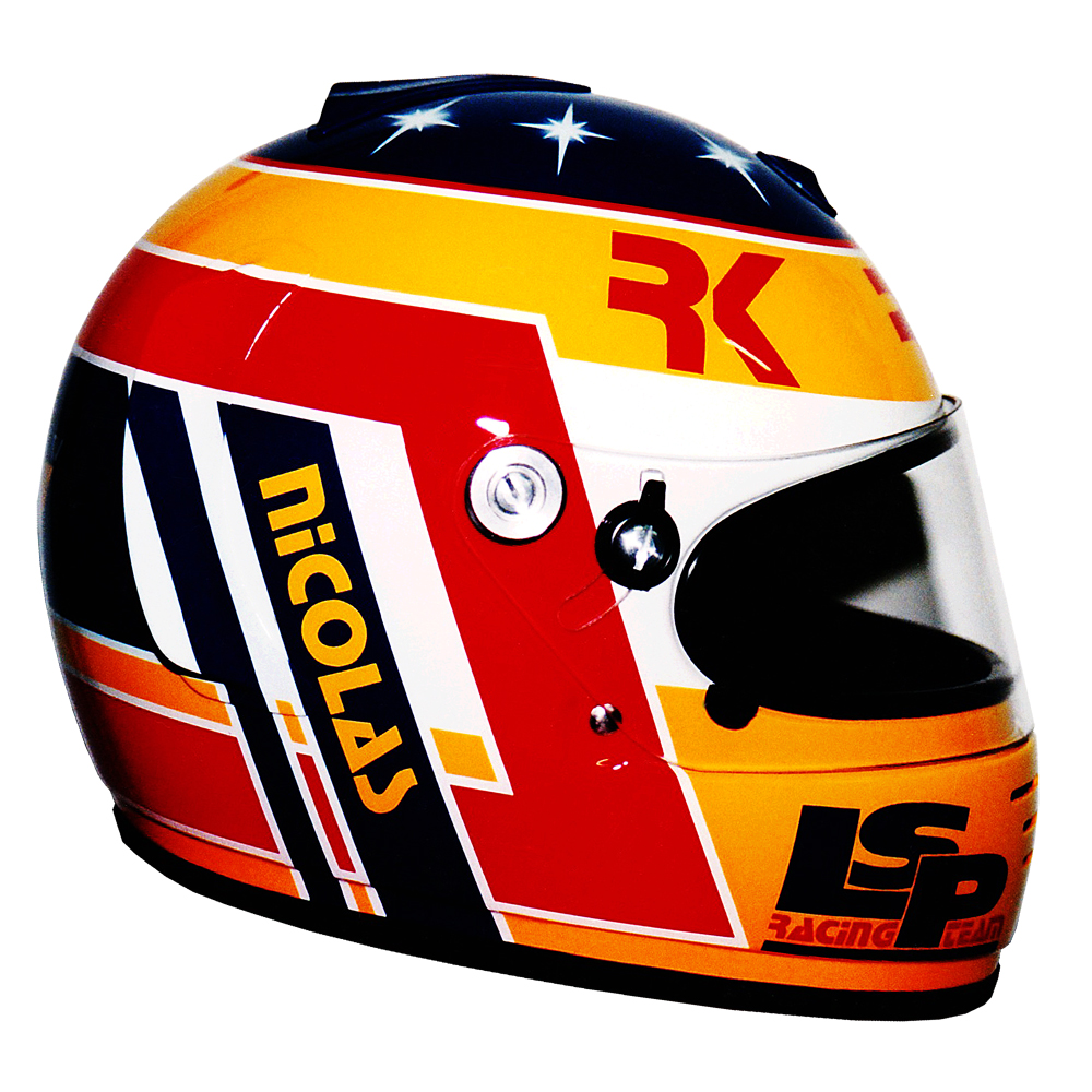 Karting 1998 Nicolas LAPIERRE Casque Arai GP 3, peint par Christian Roux / Rainbow Colors en 1998 pour Nicolas Lapierre, Team RK Compétition. Précédent Suivant
