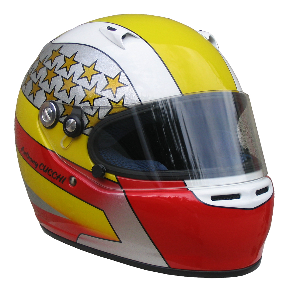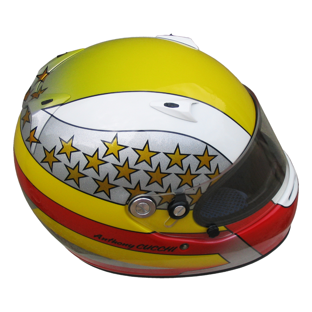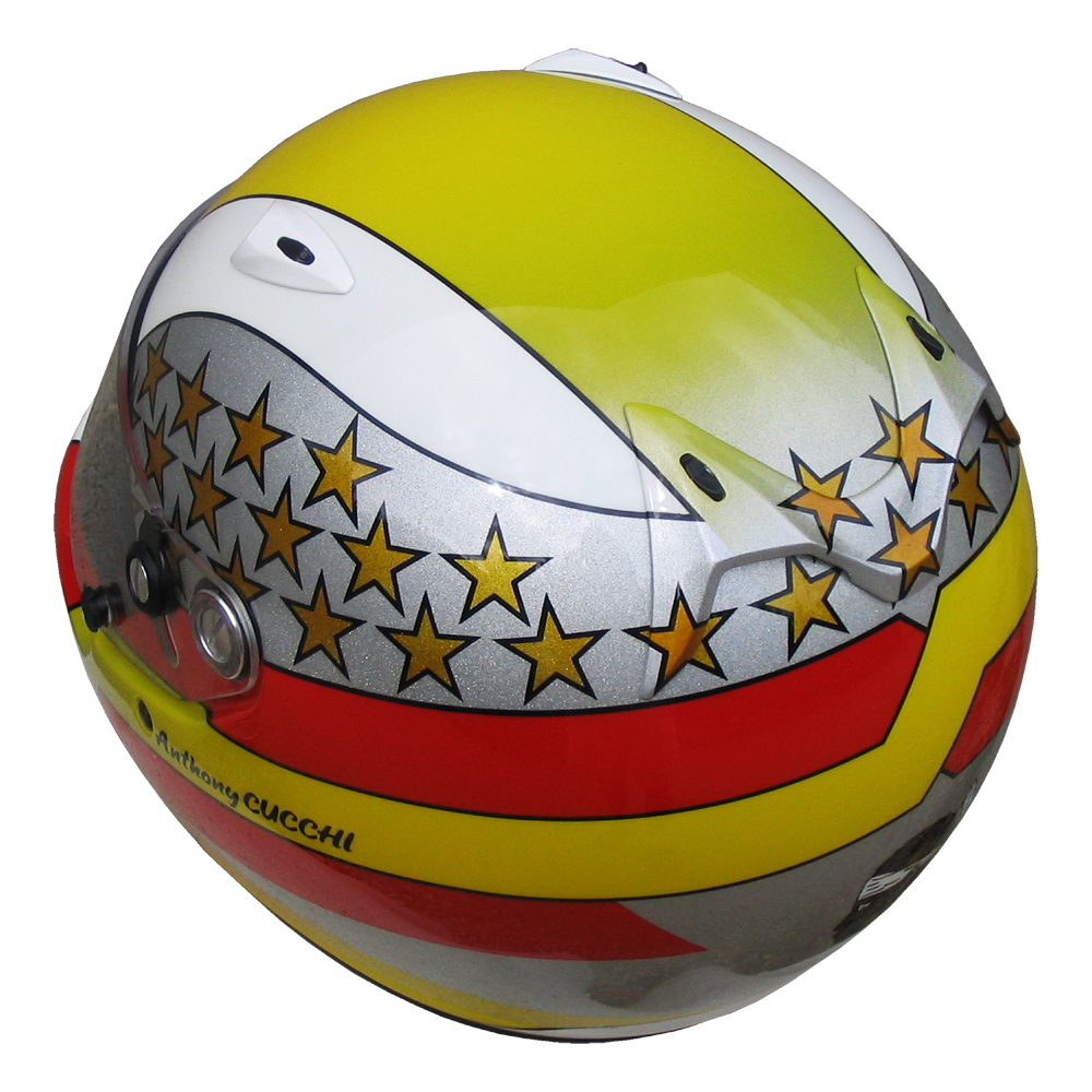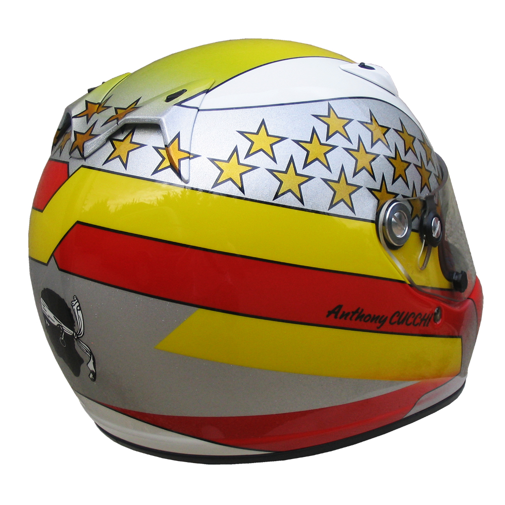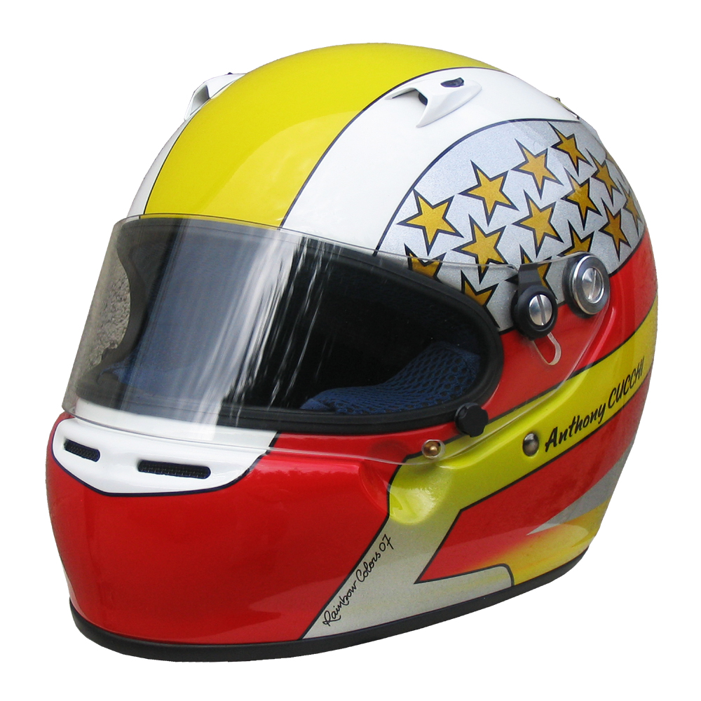 Karting 2007 Anthony CUCCHI Casque Arai SK 5, peint par Christian Roux / Rainbow Colors en 2007 pour Anthony Cucchi. Précédent Suivant