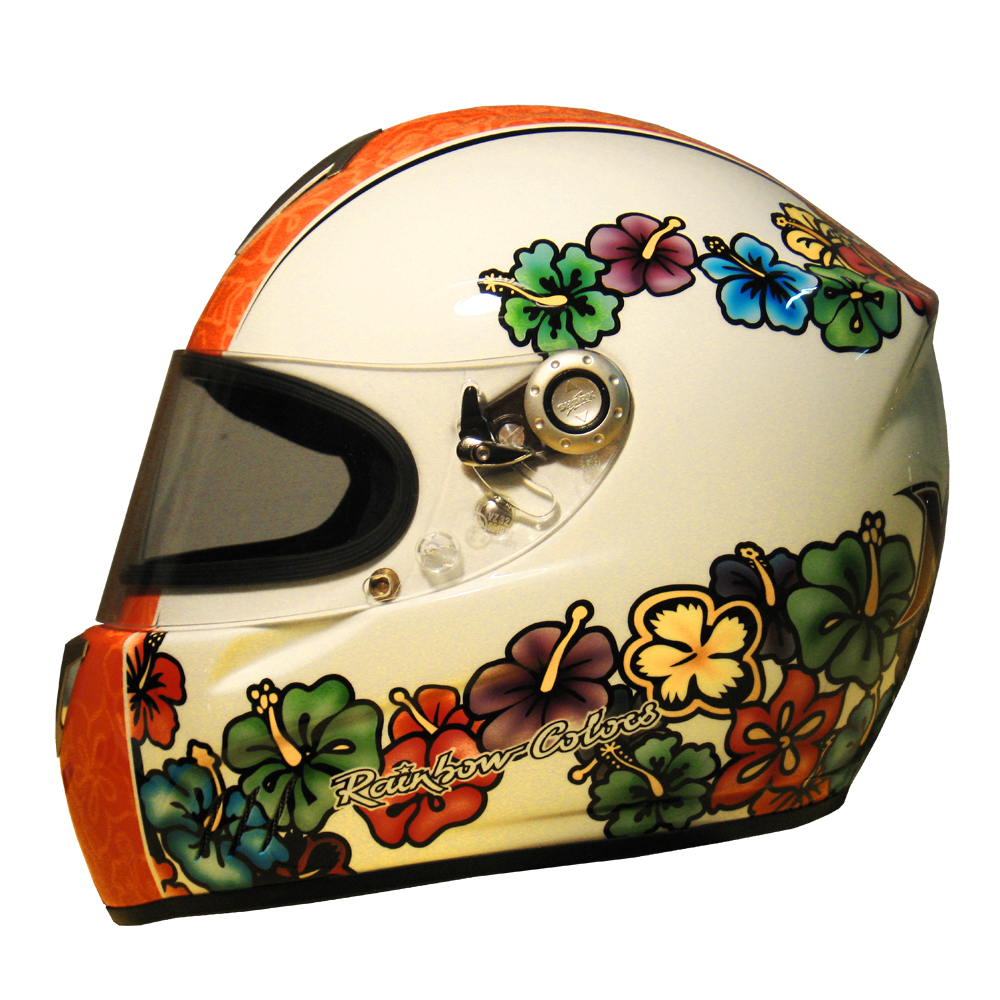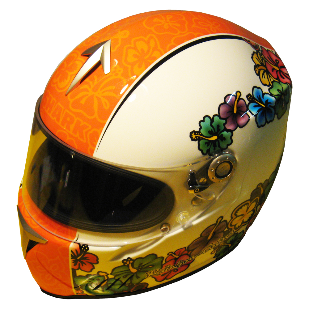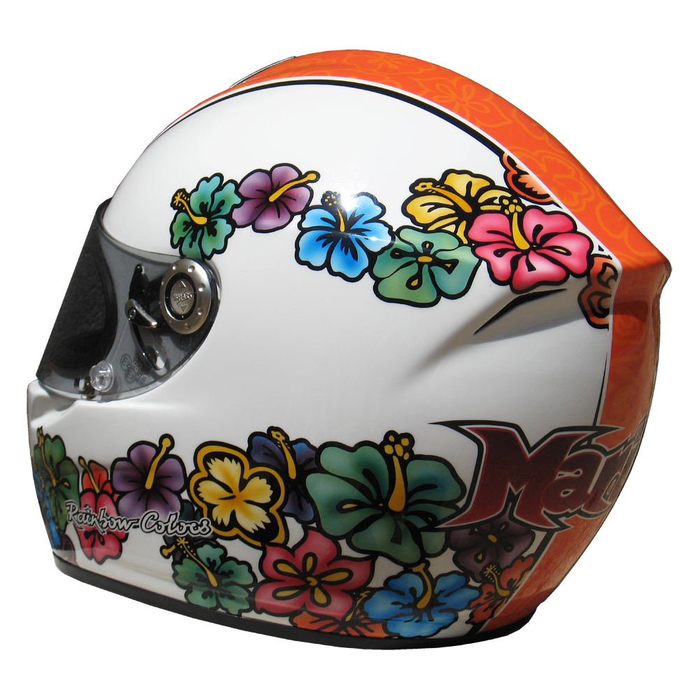 Karting 2008 Marion PLANTEVIN Casque Shark RS 4 K, crée et peint par Christian Roux / Rainbow Colors en 2008 pour Marion Plantevin. Précédent Suivant