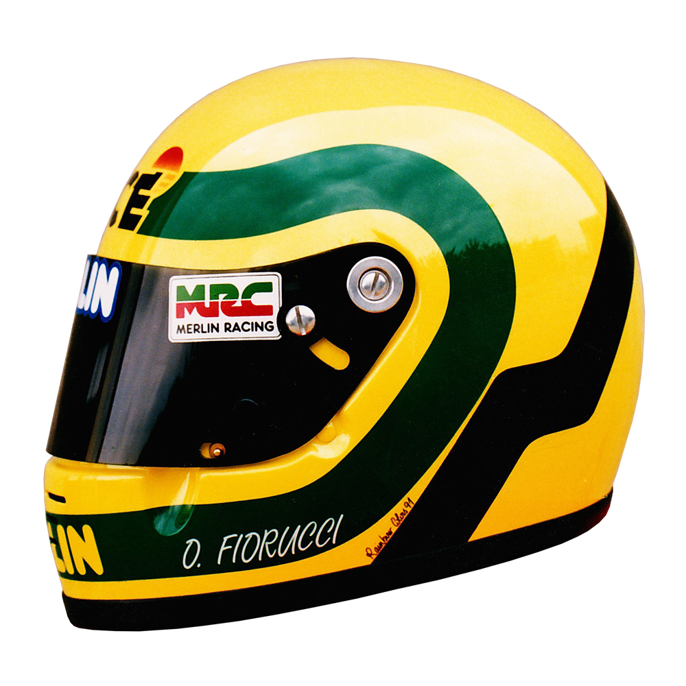 Karting 1991 Olivier FIORUCCI Casque Arai GP 2, peint par Christian Roux / Rainbow Colors en 1991 pour Olivier Fiorucci. Précédent Suivant