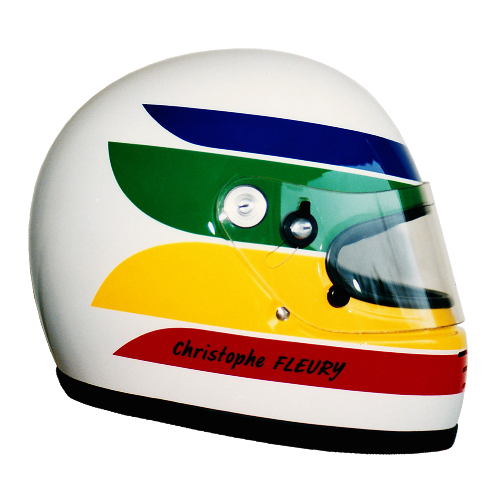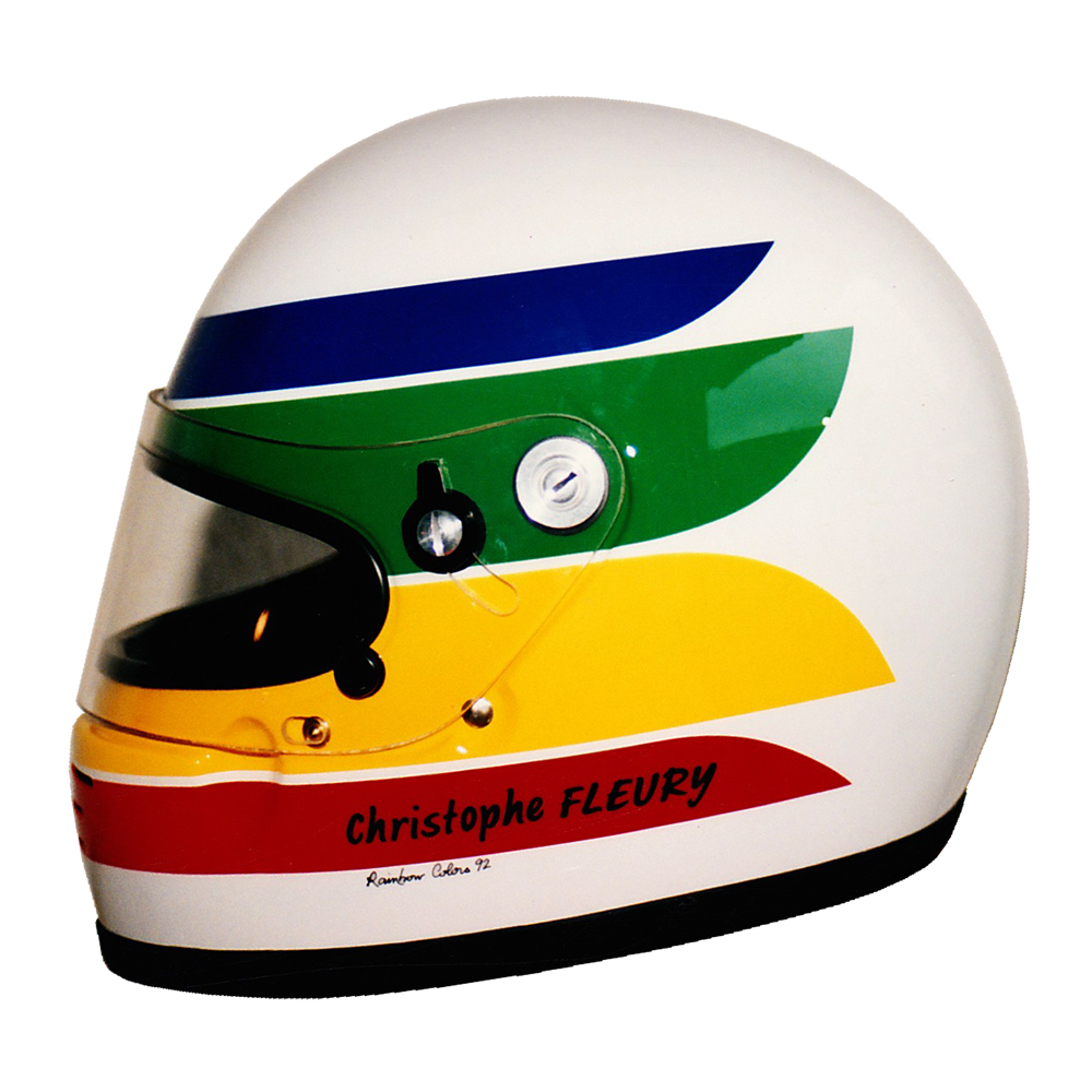 Karting 1992 Christophe FLEURY Casque Arai GP 2, peint par Christian Roux / Rainbow Colors en 1992 pour Christophe Fleury, Championnat de France de Karting. Précédent Suivant