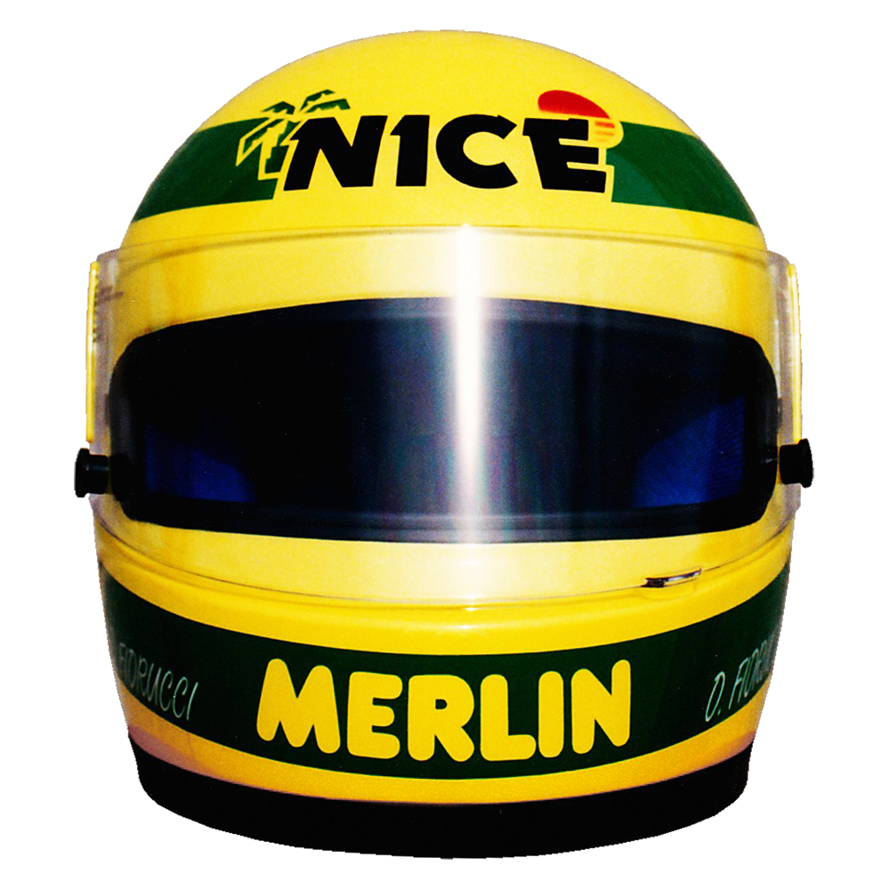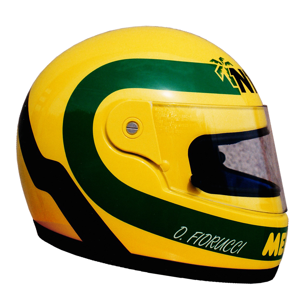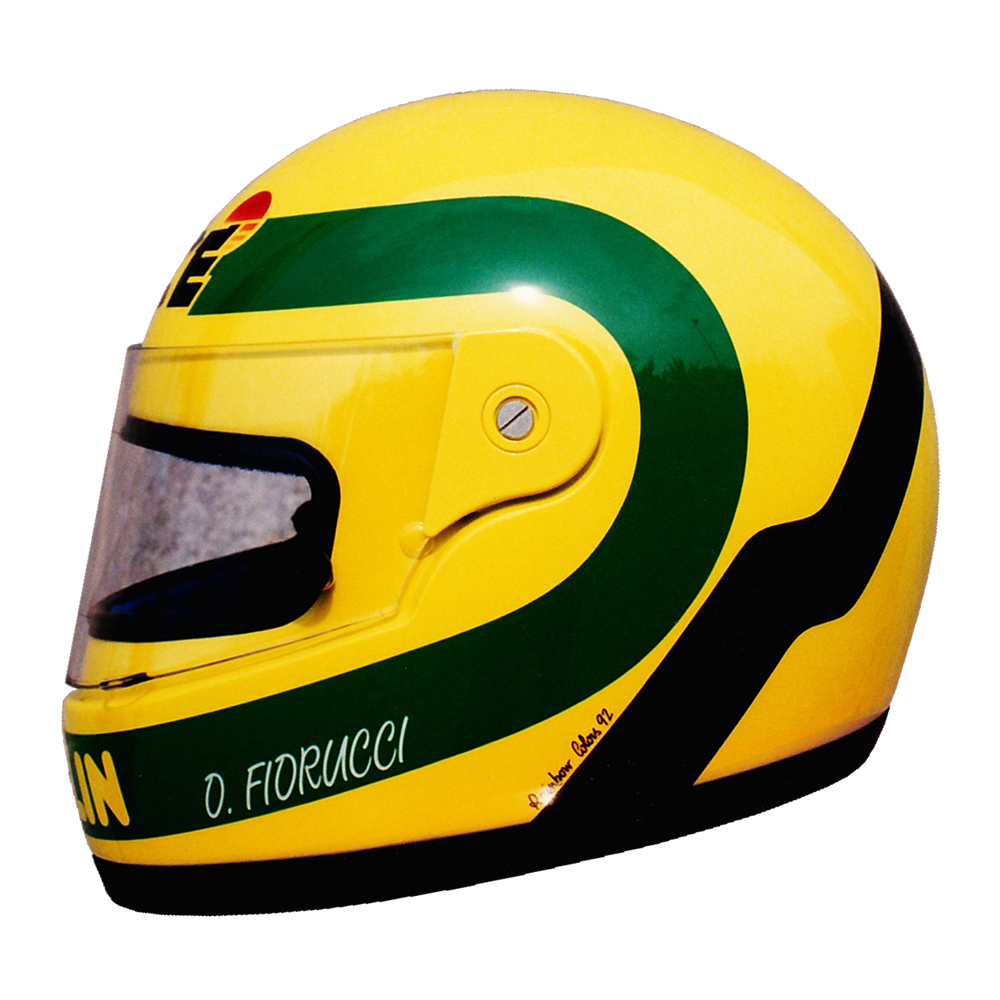 Karting 1992 Olivier FIORUCCI Casque Shoei GRV 4, peint par Christian Roux / Rainbow Colors en 1992 pour Olivier Fiorucci, Team Merlin, Champion d'Europe de Kart. Précédent Suivant
