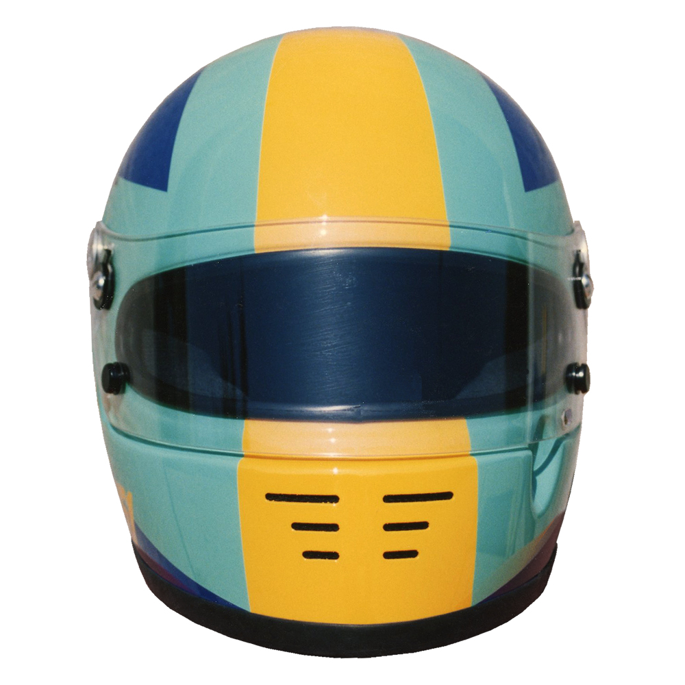 Karting 1994 Ludovic BAETZ Casque Arai GP 2, crée et peint par Christian Roux / Rainbow Colors en 1994 pour Ludovic Baetz, Championnat de France Kart 100 Inter. Précédent Suivant