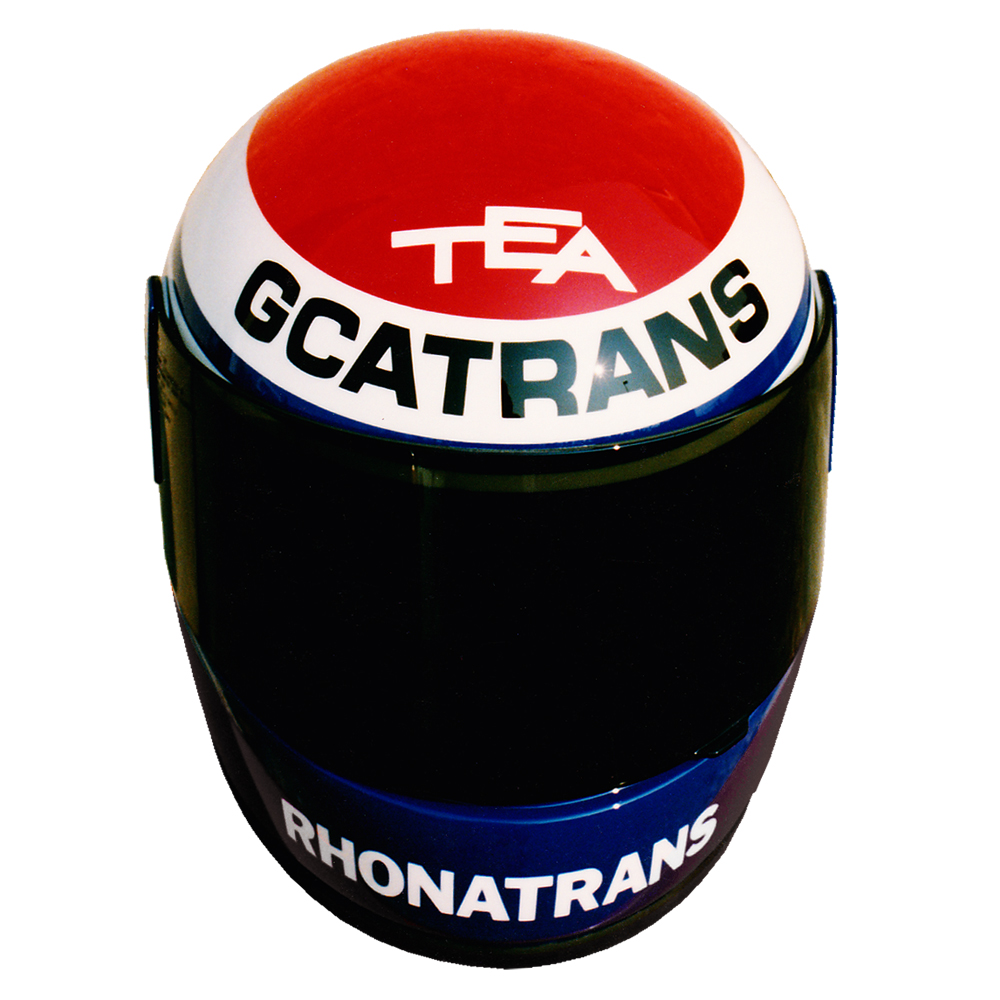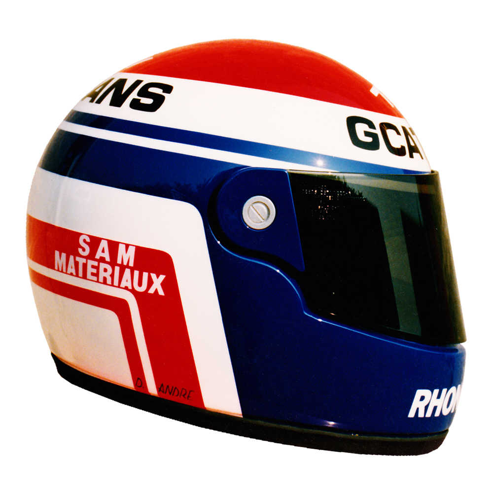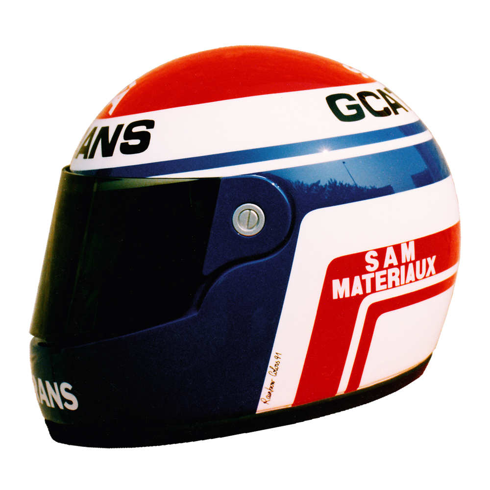 Karting 1991 Didier ANDRÉ Casque Shoei GRV 4, peint par Christian Roux / Rainbow Colors en 1991 pour Didier André, Championnat de France et du Monde Formule A. Précédent Suivant