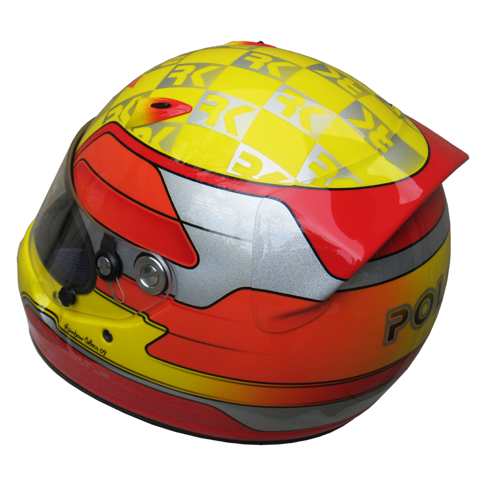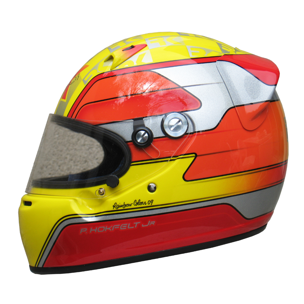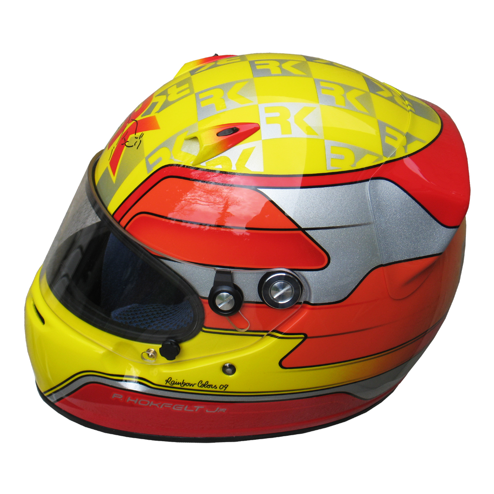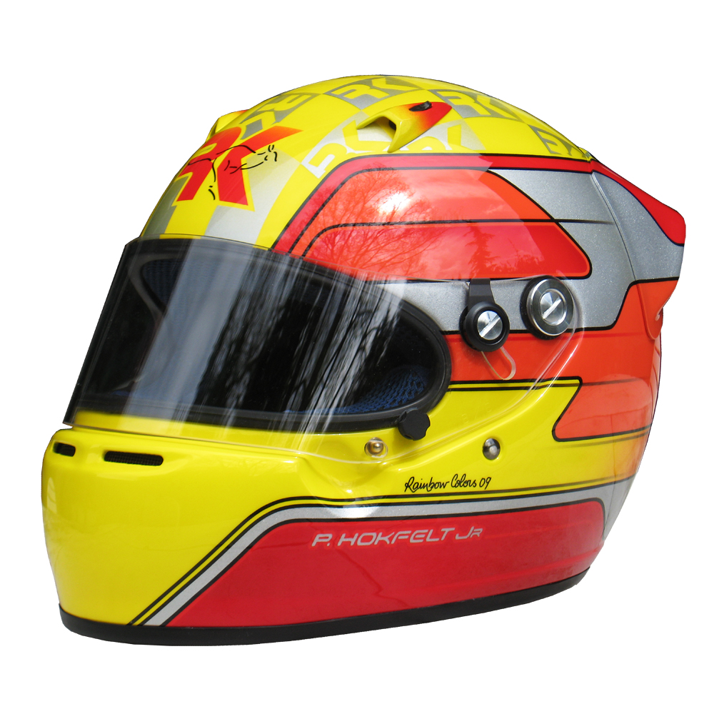 Karting 2009 Paul HOKFELT Jr Casque Arai CK 5, crée et peint par Christian Roux / Rainbow Colors en 2009 pour Paul Hokfelt Jr, Team RK Compétition, Championnat de France Minimes. Précédent Suivant