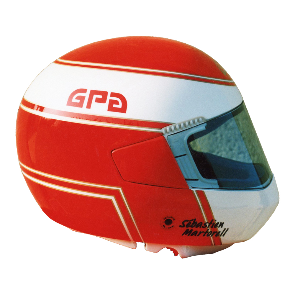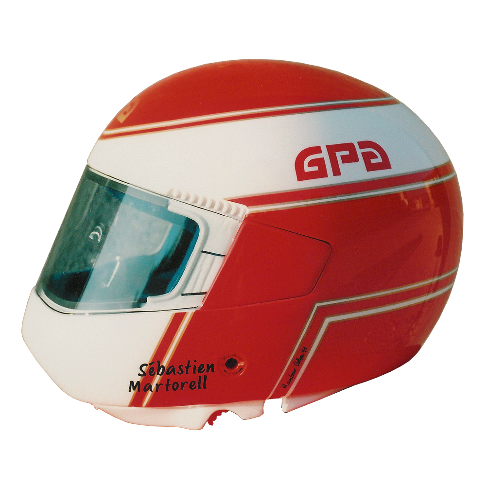 Karting 1991 Sébastien MARTORELL Casque GPA C2G, peint par Christian Roux / Rainbow Colors en 1991 pour Sébastien Martorell. Précédent Suivant