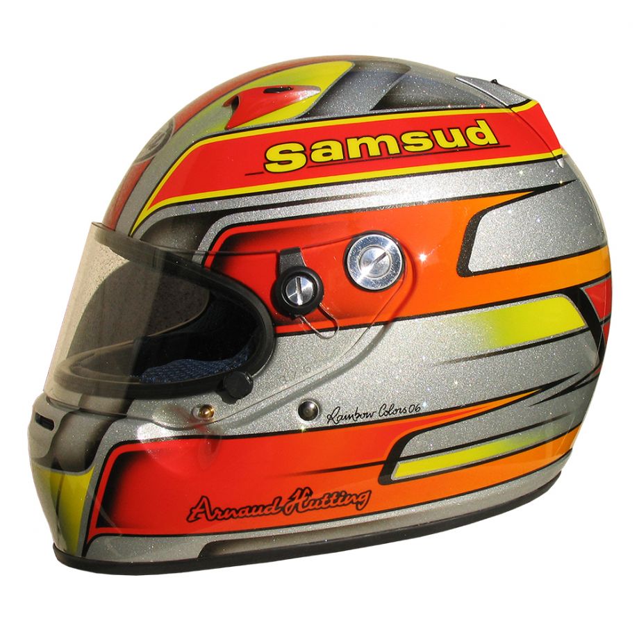 Retrouvez les casques des pilotes de karting dans leurs différentes catégories peints par Christian Roux au travers des nombreuses saisons depuis les débuts de l'activité de Rainbow Colors en 1979.