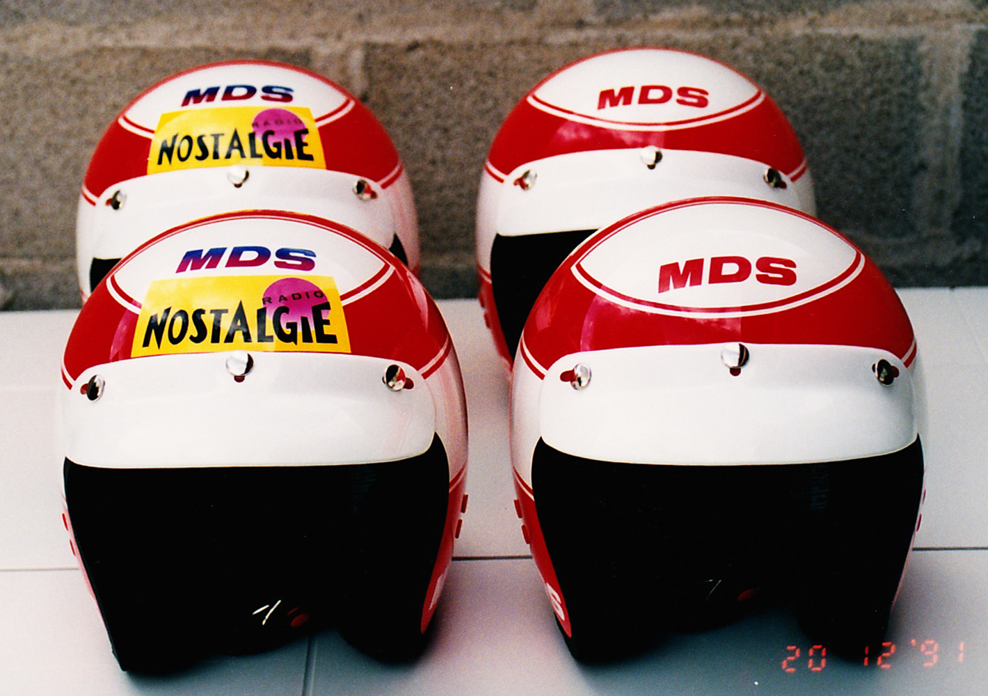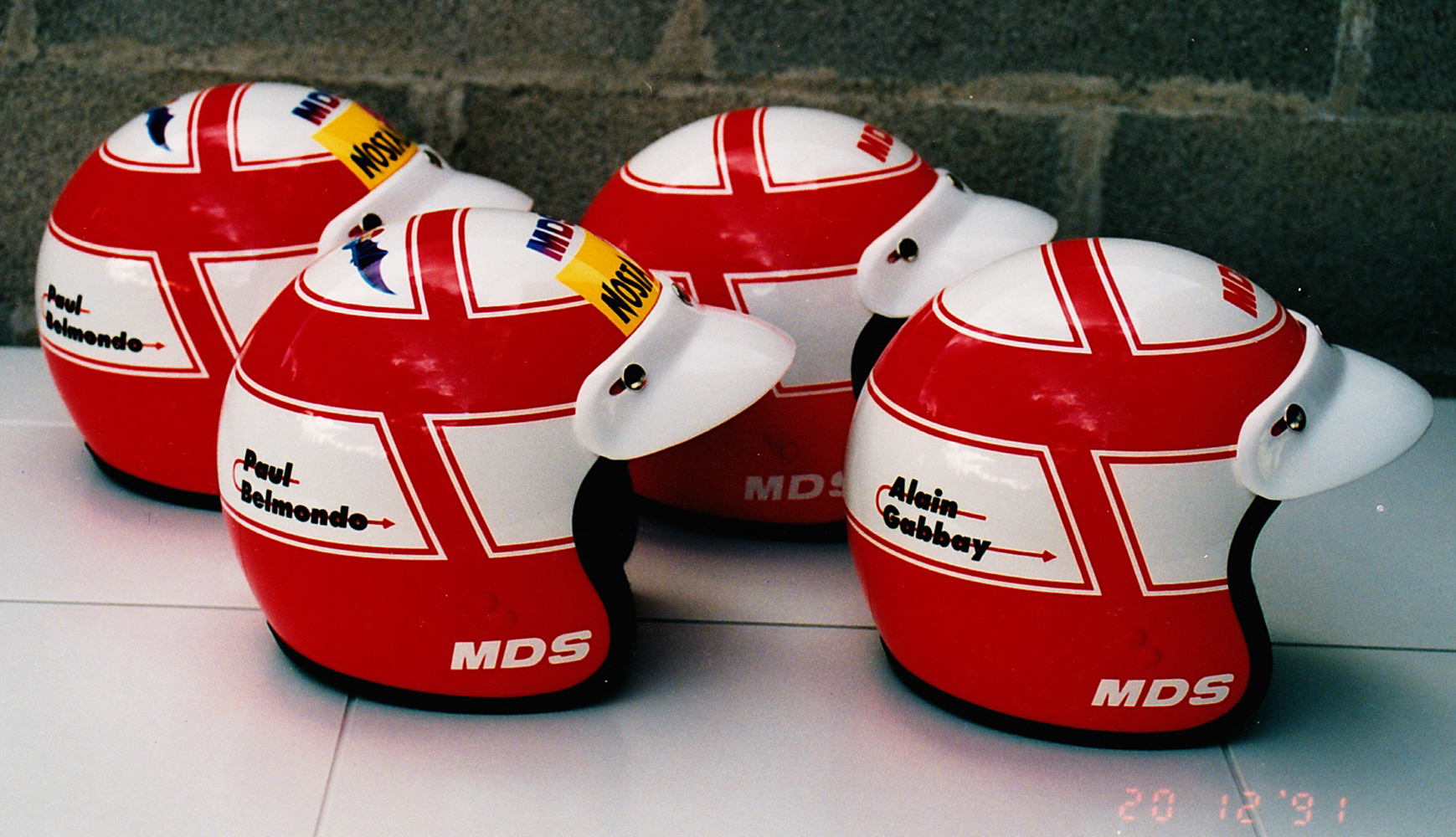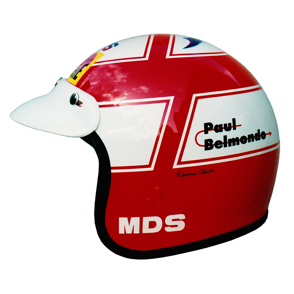 Rallye 1991 Paul BELMONDO #3 Casque MDS Jet Auto, peint par Christian Roux / Rainbow Colors en 1991 pour Paul Belmondo, Team Nissan Dessoude Paris Dakar 1992. . Précédent Suivant
