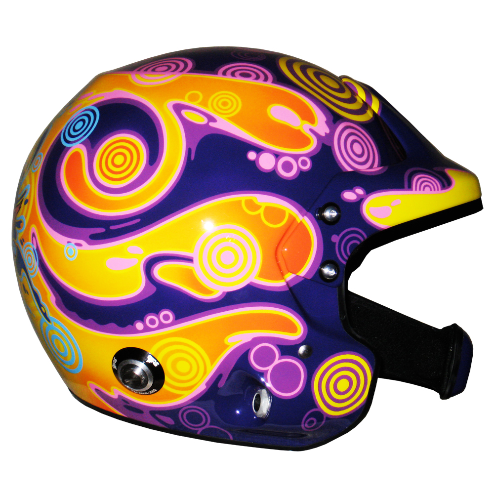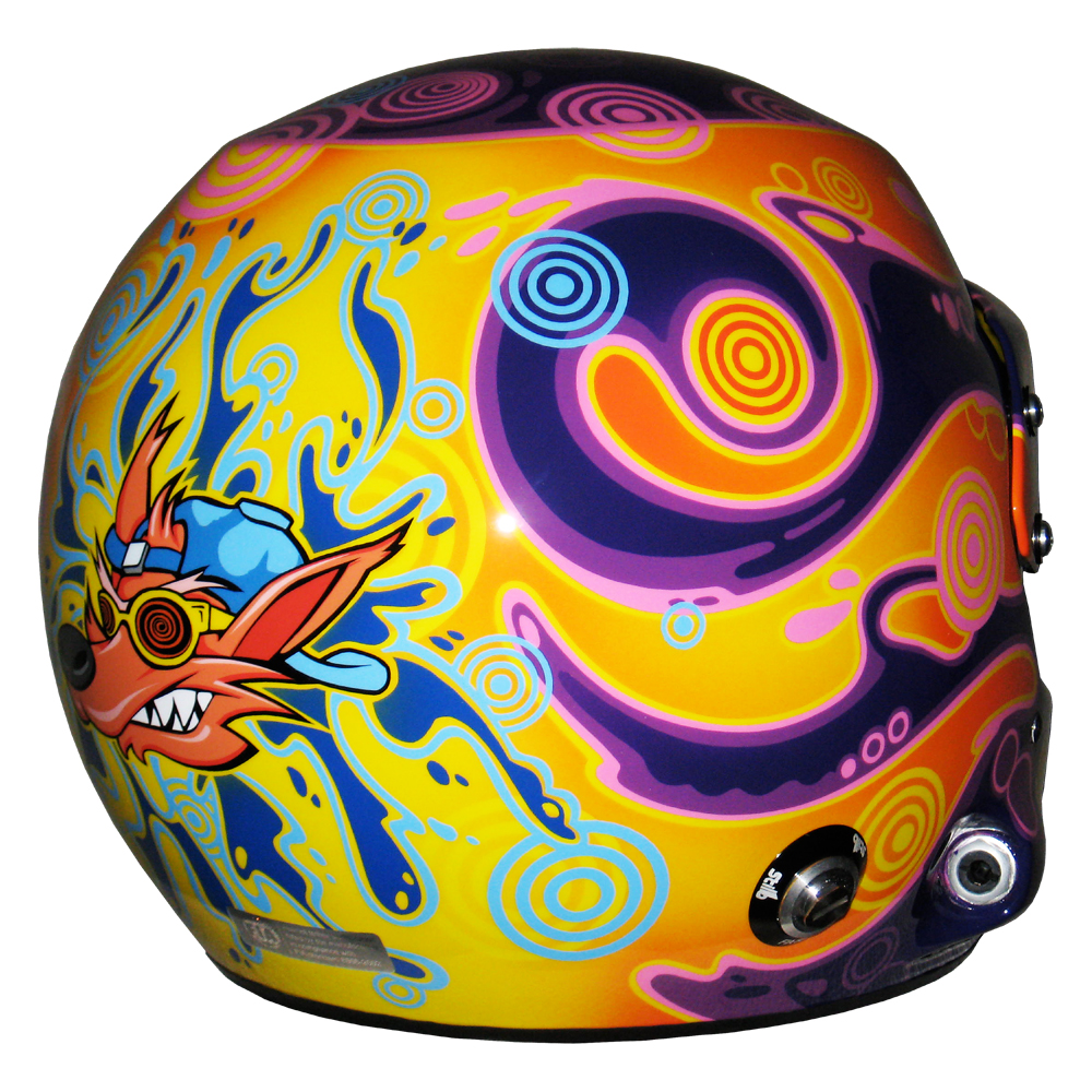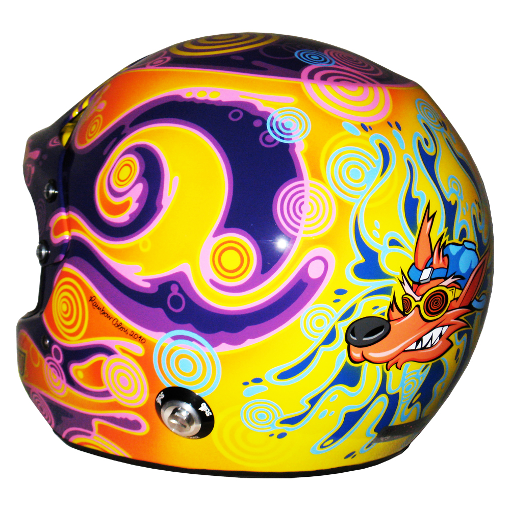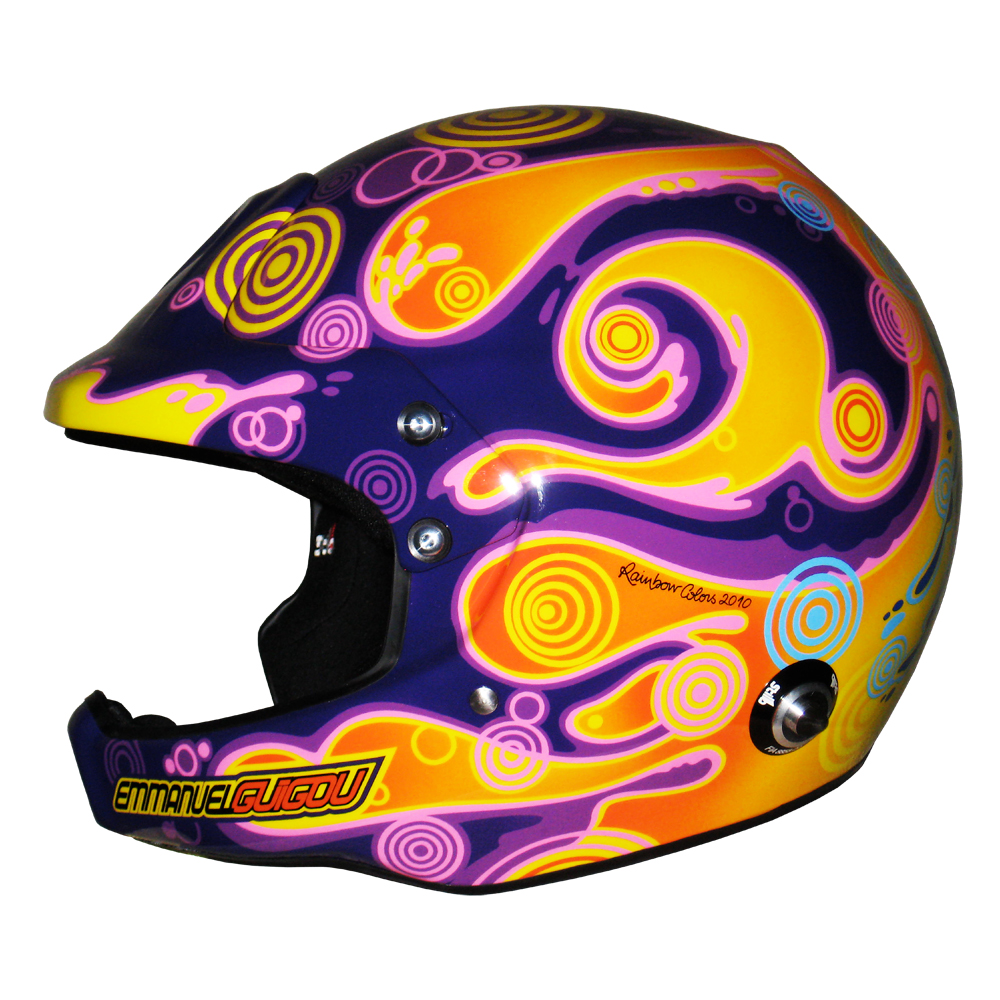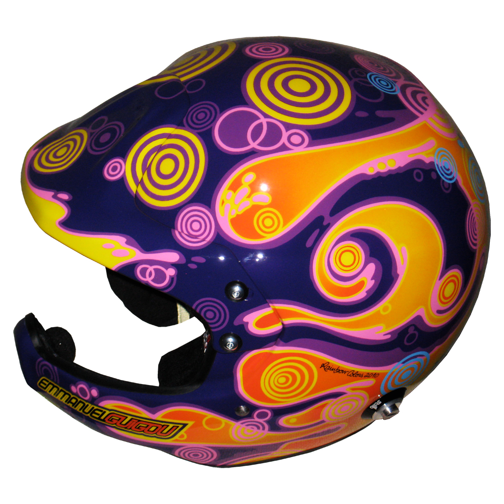 Rallye 2010 Manu GUIGOU Casque Stilo WRC DES, peint par Christian Roux / Rainbow Colors en 2010 pour Emmanuel Guigou, pilote Renault Sport. Précédent Suivant