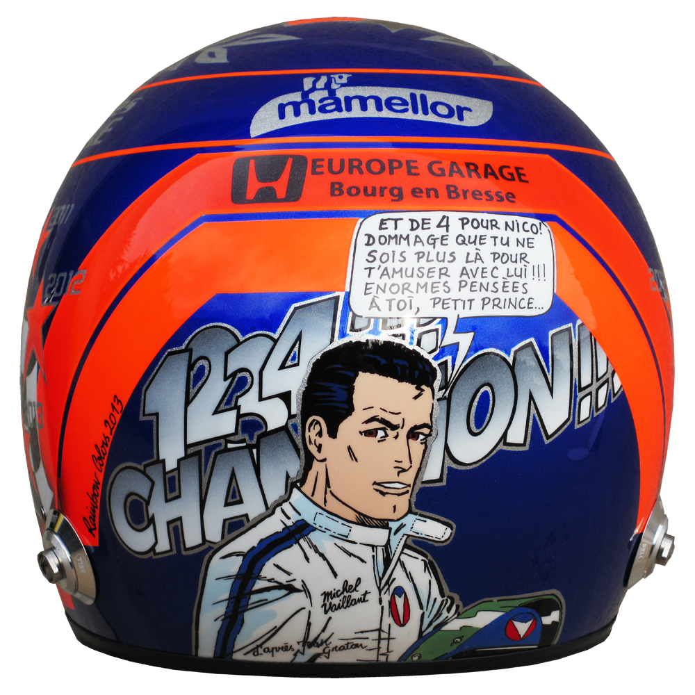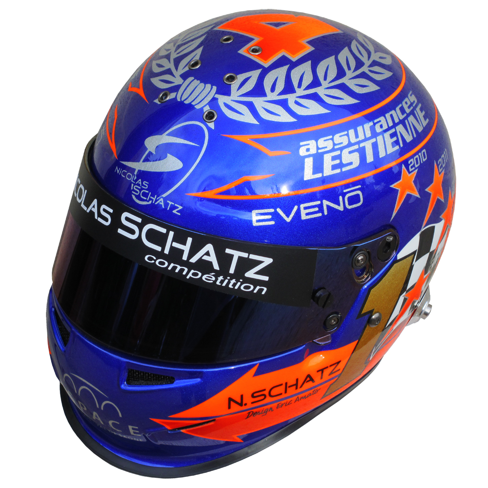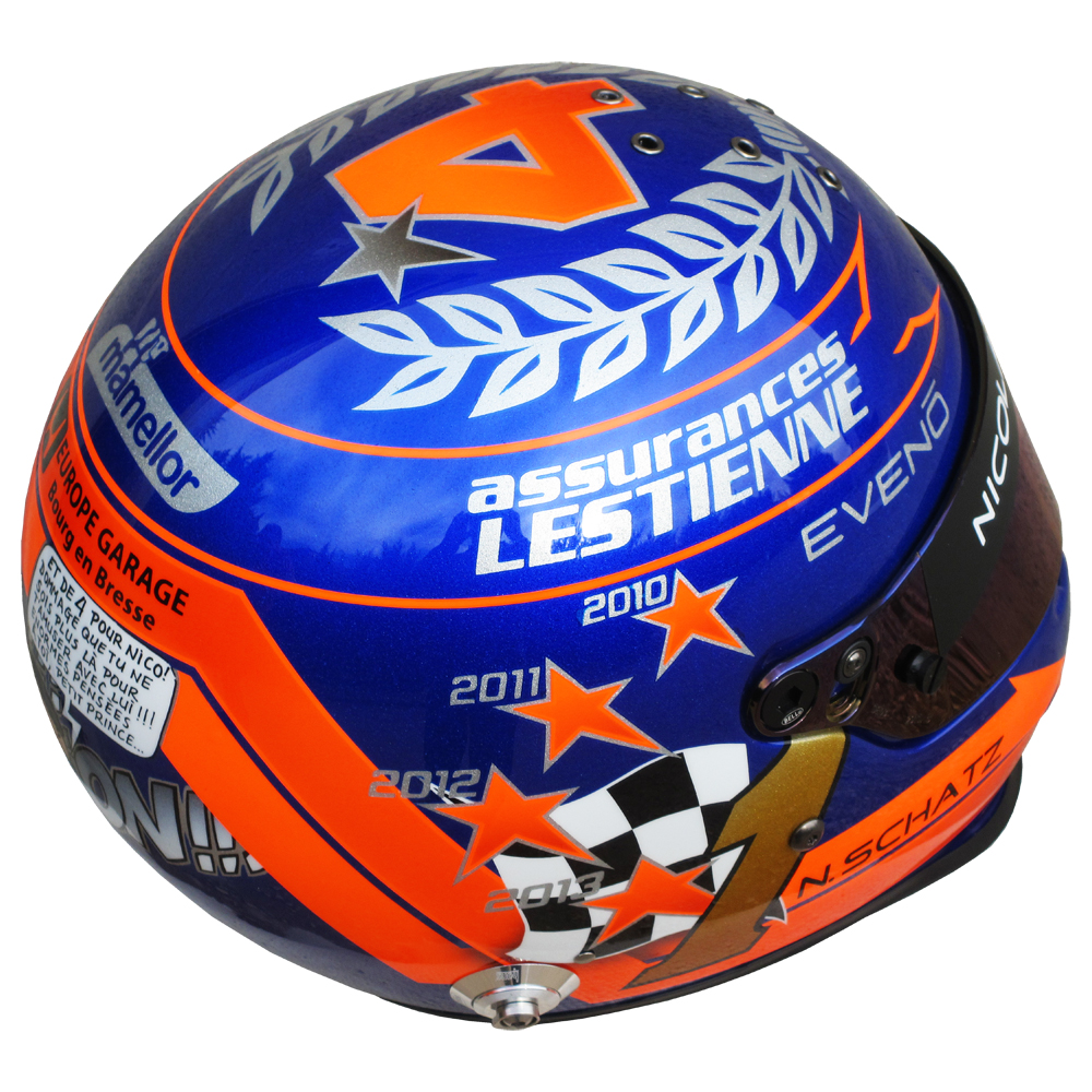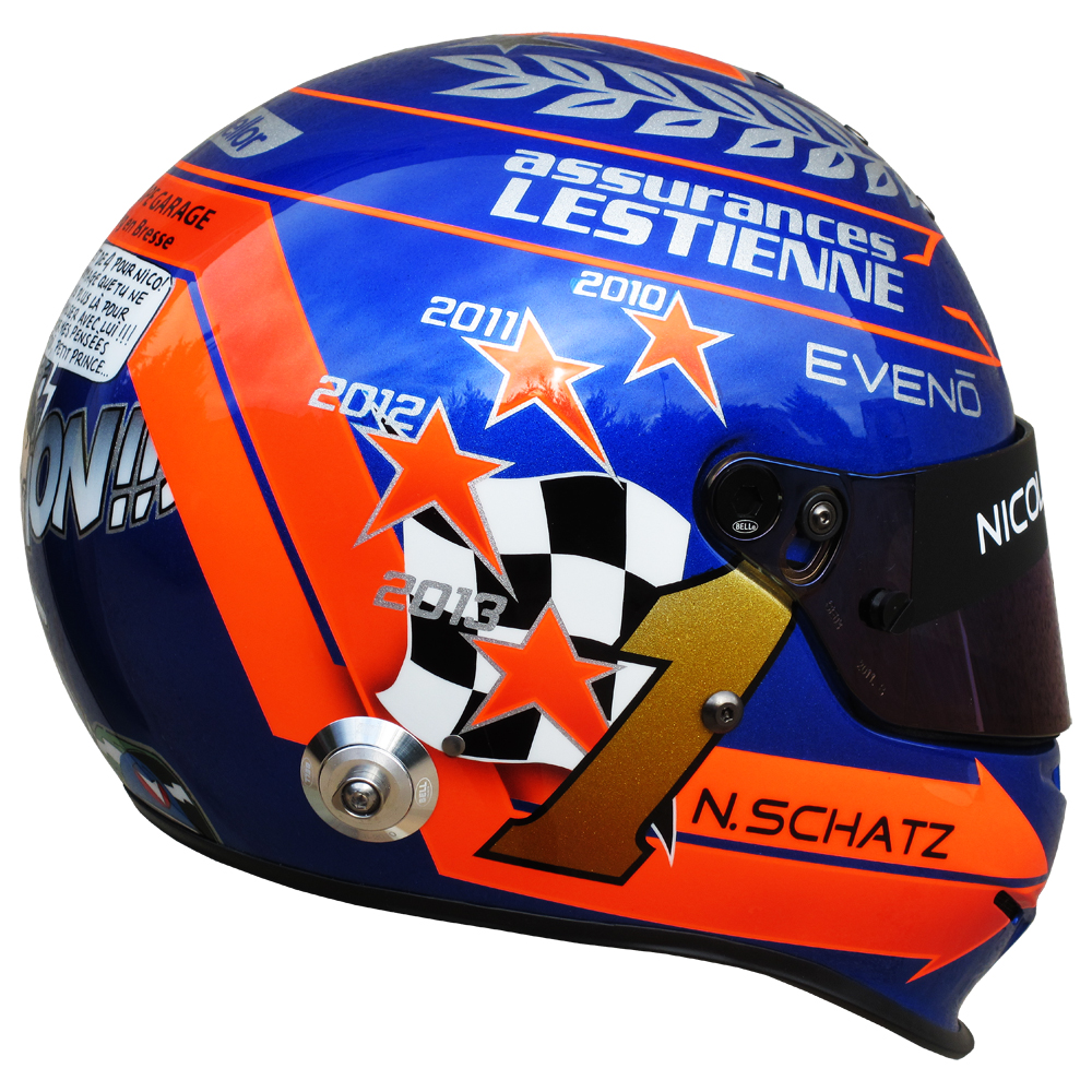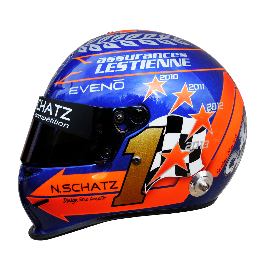 Rallye 2013 Nicolas SCHATZ Casque Bell RS 3, peint par Christian Roux / Rainbow Colors en 2013 pour Nicolas Schatz, Champion de France de la Montagne. Précédent Suivant