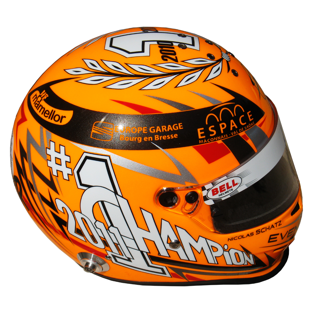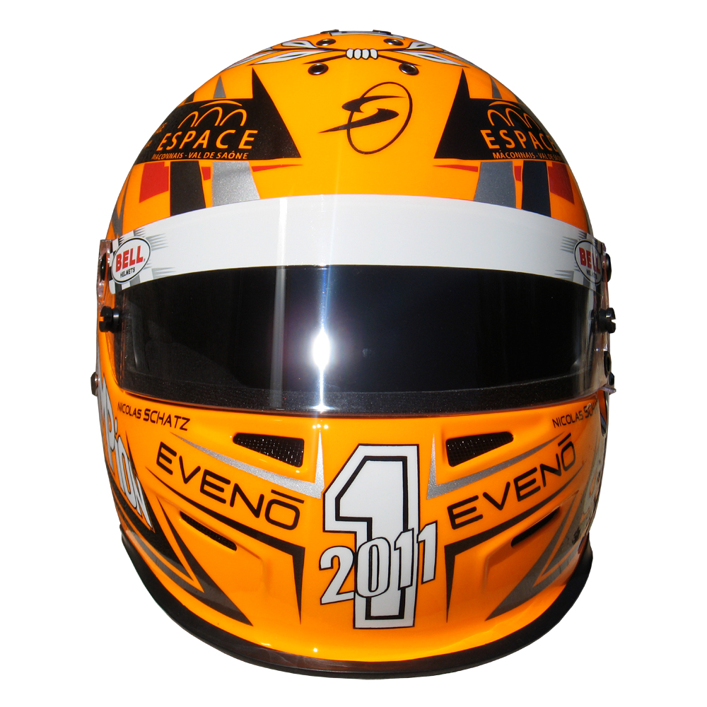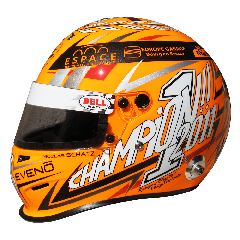 Rallye 2011 Nicolas SCHATZ #2 Casque Bell RS 3, peint par Christian Roux / Rainbow Colors en 2011 pour Nicolas Schatz, Champion de France de la Montagne. Précédent Suivant
