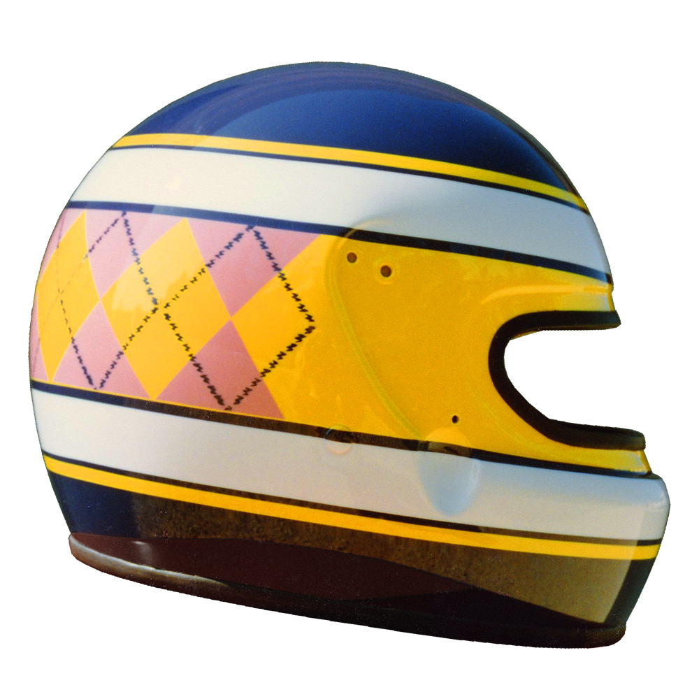 Rallye 1988 André ALESSANDRIA Casque Bell XFM-1, peint par Christian Roux / Rainbow Colors en 1988 pour André Alessandria. Précédent