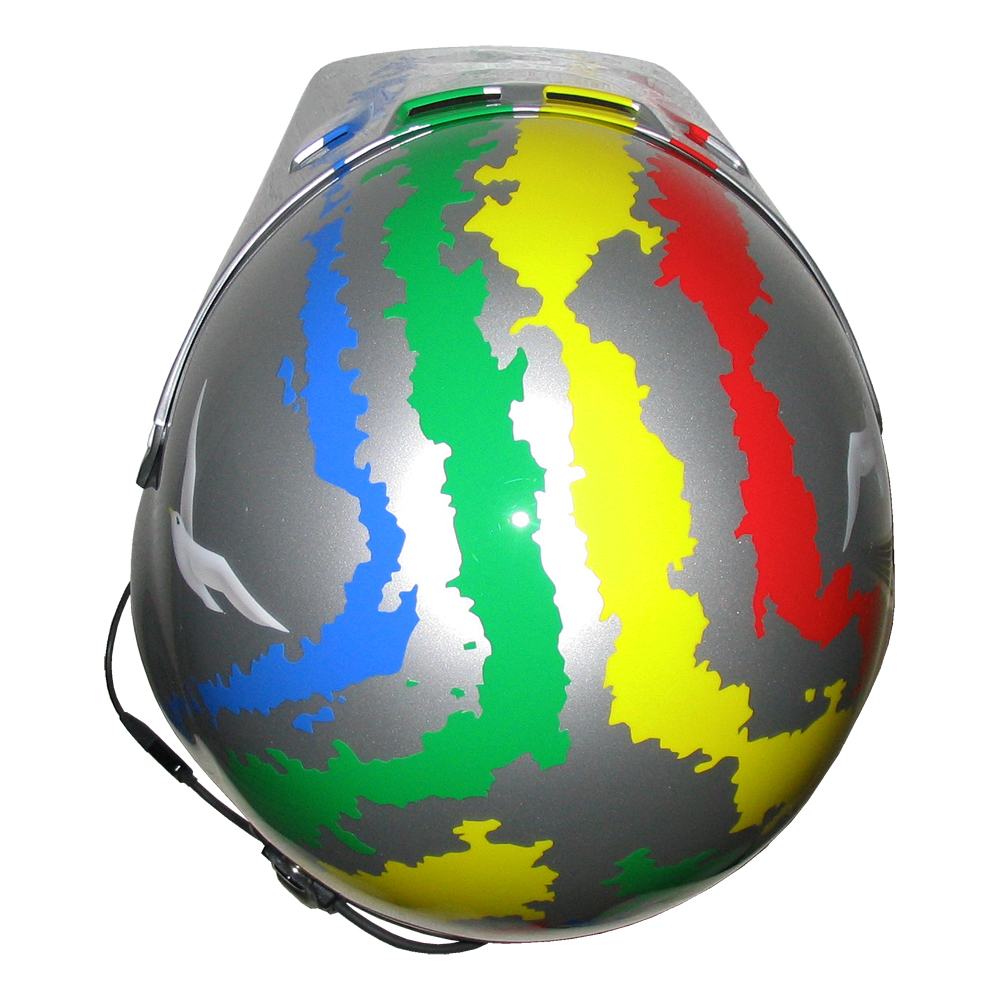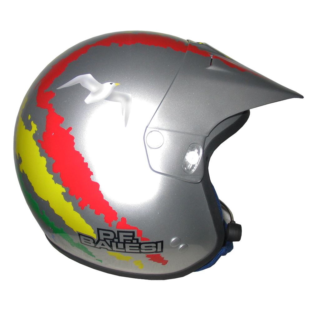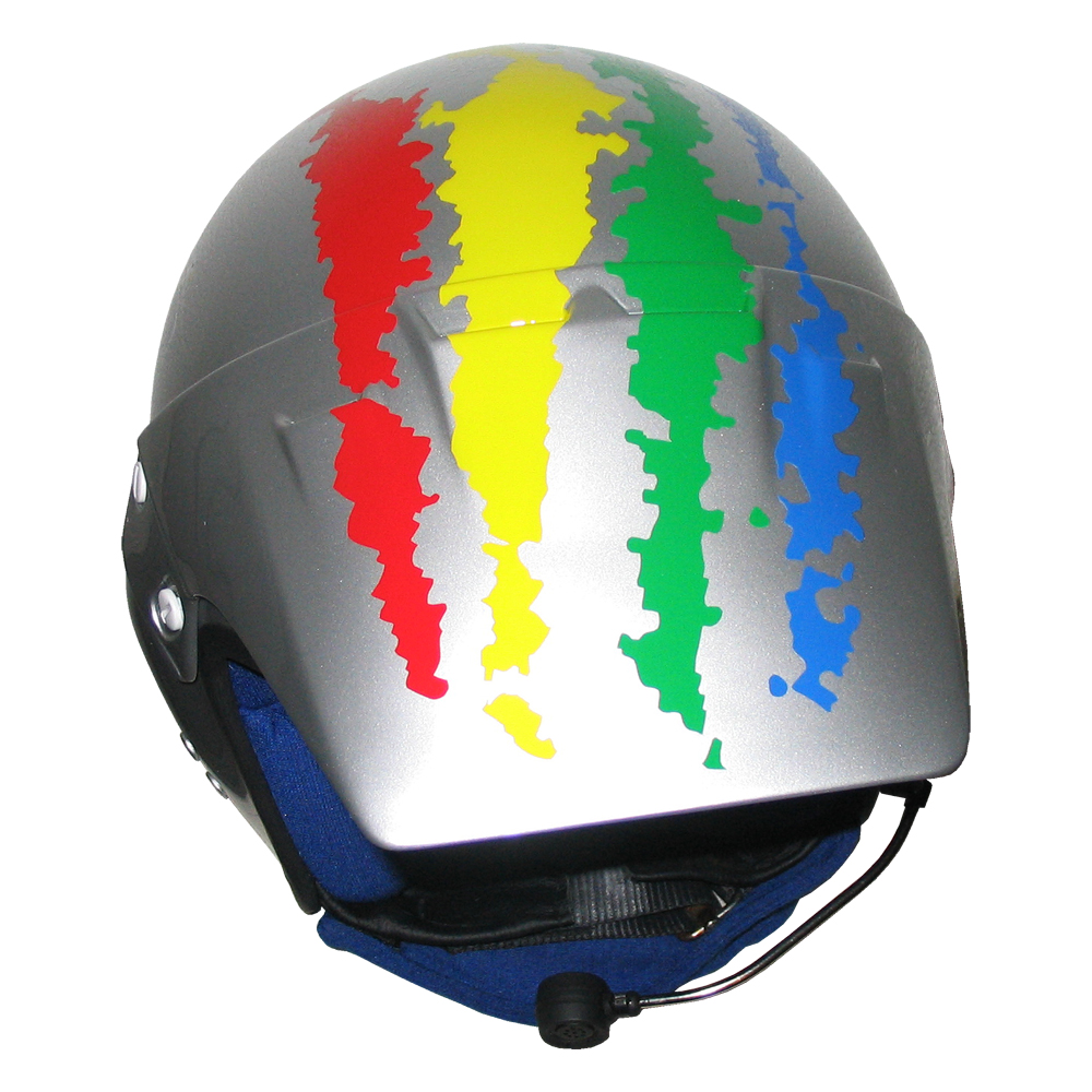 Rallye 2004 Pierre François BALESI Casque Peltor Rally Pro, peint par Christian Roux / Rainbow Colors en 2004 pour Pierre François Balesi. Précédent Suivant