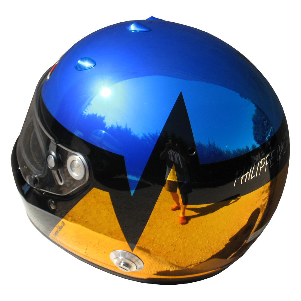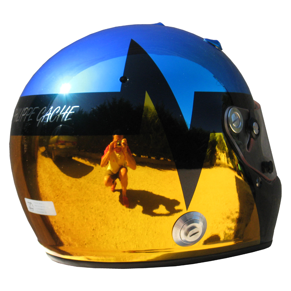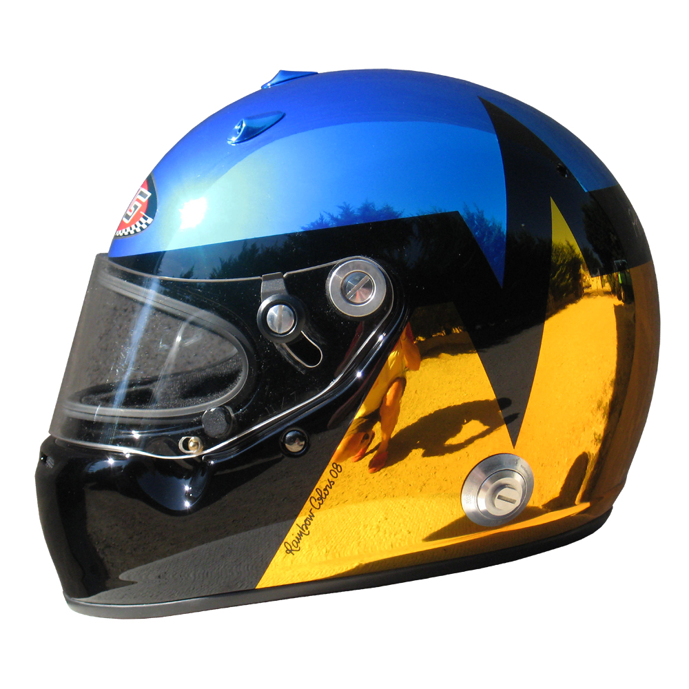 Rallye 2008 Philippe GACHE Casque Arai GP 5 W, peint par Christian Roux / Rainbow Colors en 2008 pour Philippe Gache, Team SMG, Rallye Véhicules Historiques. Précédent Suivant