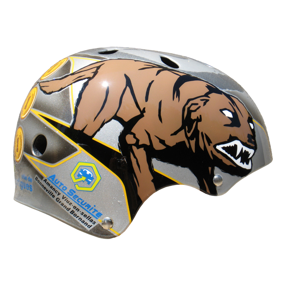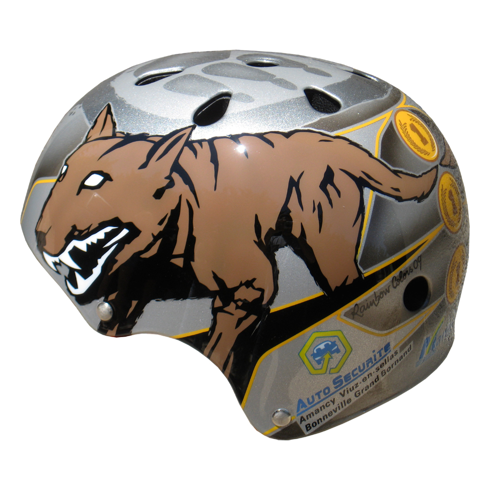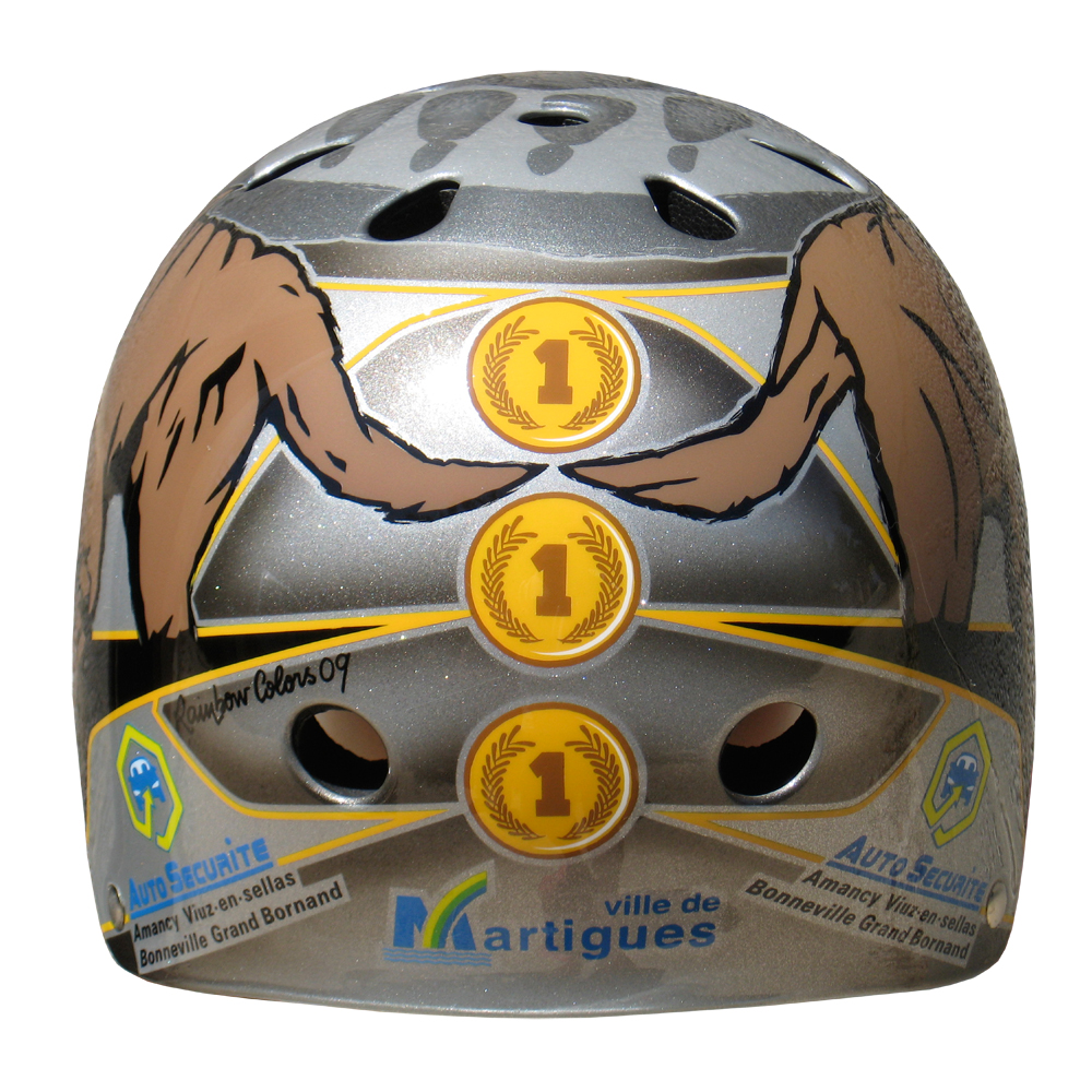 Bmx Dirt Trial 2009 Gilles COUSTELLIER Casque Koxx bol trial, crée et peint par Christian Roux / Rainbow Colors en 2009 pour Gilles Coustellier, Champion du Monde de VTT Trial, Team Koxx. Précédent Suivant