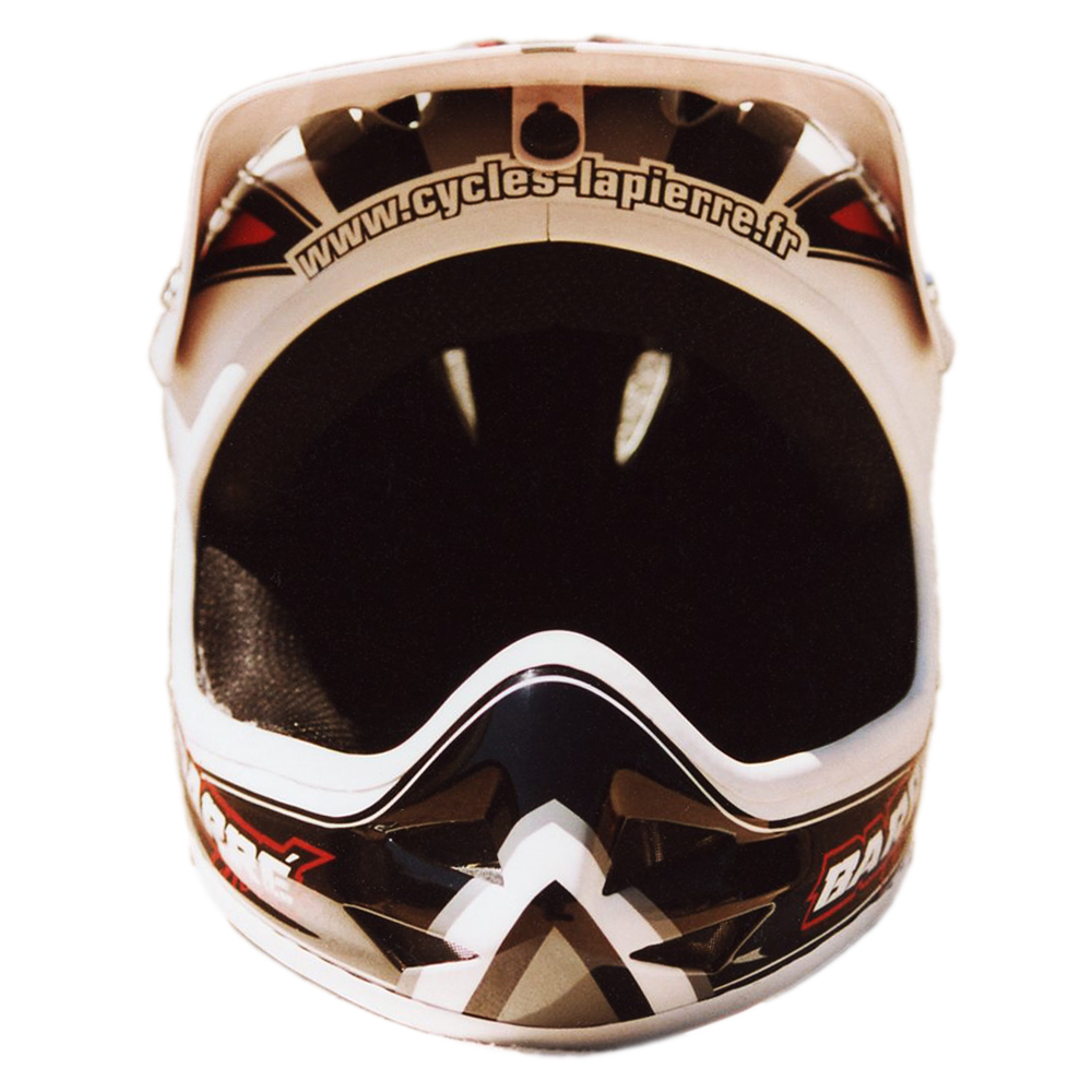 Descente VTT 2004 Thomas BARRÉ Casque de descente Bell Bellistic, peint par Christian Roux / Rainbow Colors en 2004 pour Thomas Barré, Team Lapierre. Précédent Suivant