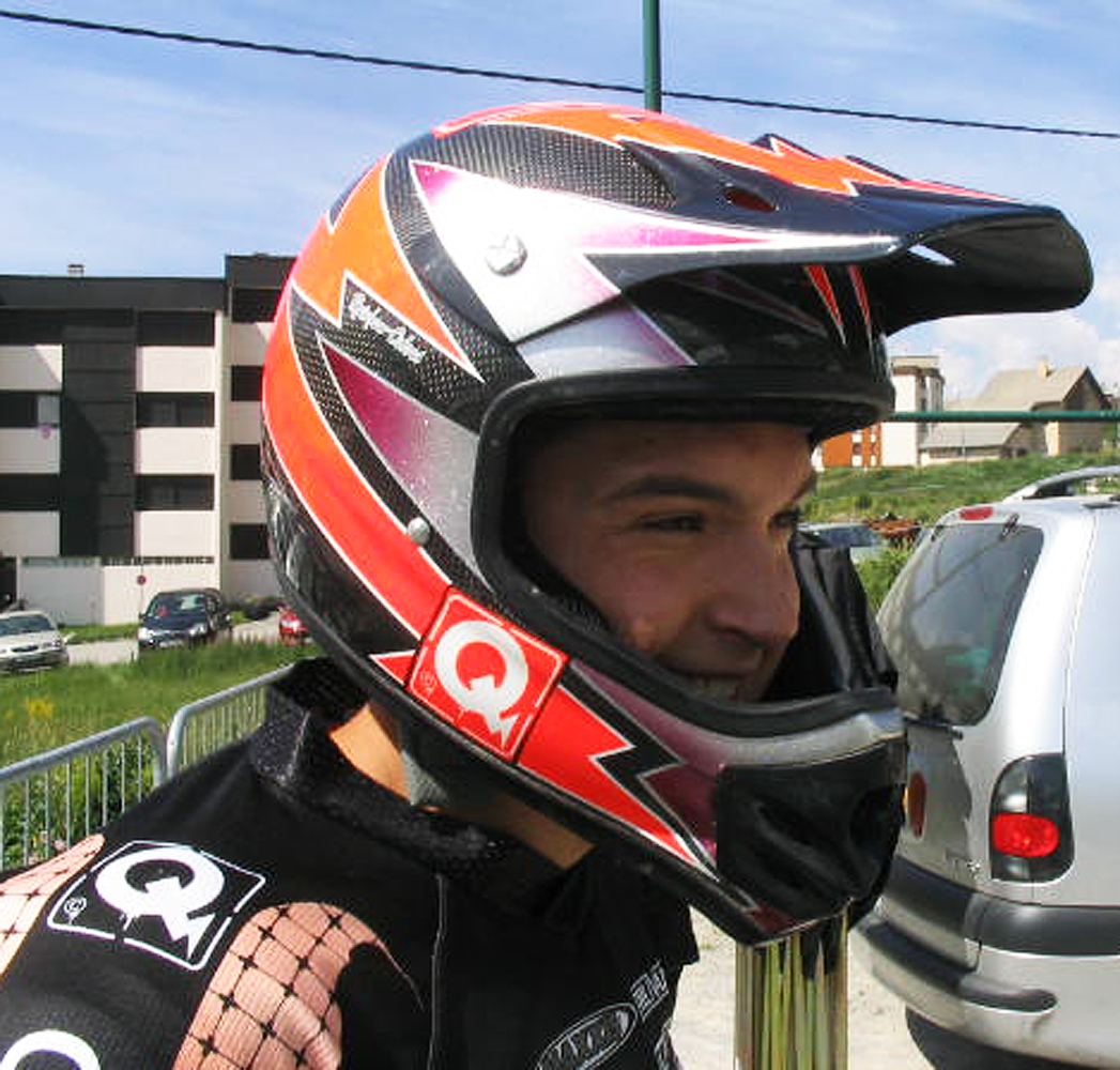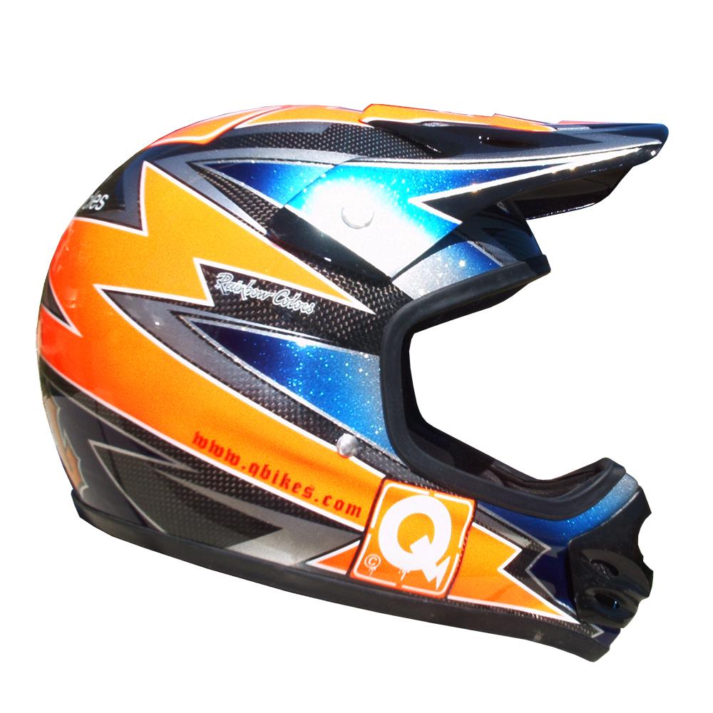 Descente VTT 2004 Julien CAMELLINI #1 Casque de descente B 52 DH, crée et peint par Christian Roux / Rainbow Colors en 2004 pour Julien Camellini Team Q Bikes. Précédent Suivant